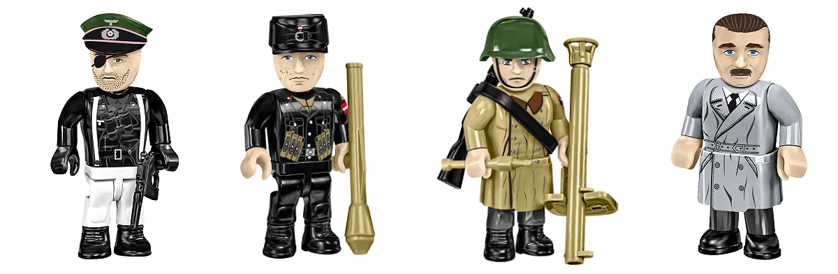 • 4 figurki w zestawie: W zestawie znajdziesz aż cztery unikatowe figurki: dowódcę czołgu, dwóch żołnierzy Volkssturmu (w tym jednego z rowerem!), oraz wyjątkową postać Ferdynanda Porsche – twórcy projektu MAUS. Figurki żołnierzy zostały wyposażone w historyczne uzbrojenie, takie jak Panzerfaust, Panzerschreck, Mauser Kar98k czy legendarny pistolet Mauser C96. Takie dodatki nie tylko wzbogacają zestaw, ale umożliwiają tworzenie kreatywnych scen i dioram z końcowego etapu wojny.