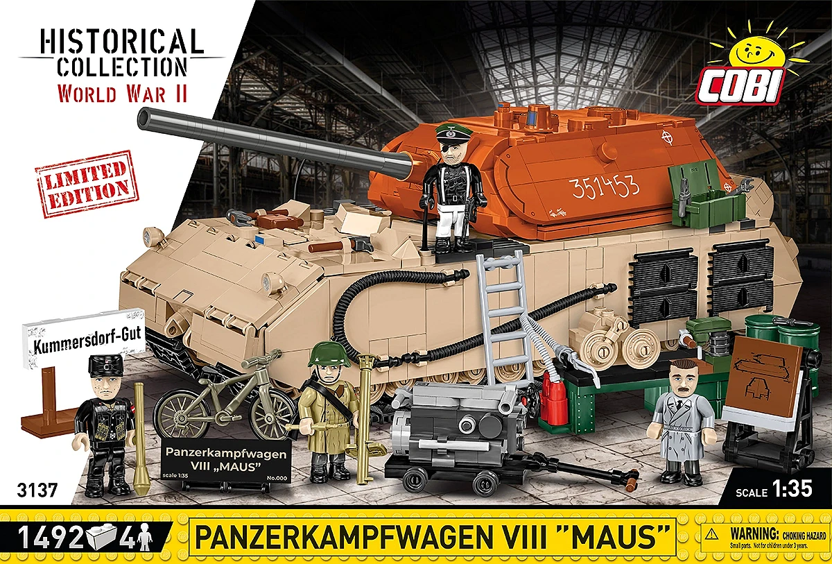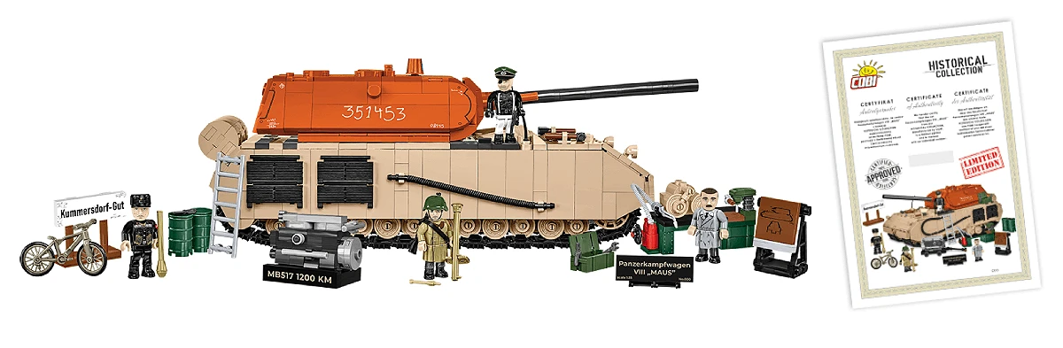 Model Panzer VIII Maus od COBI to nie tylko potężna konstrukcja z klocków – to także doskonałe narzędzie do nauki historii, kreatywnej zabawy i rozwijania pasji modelarskiej. To niepowtarzalna limitowana edycja z unikatowymi kolorami modelu, aż z czterema figurkami i oryginalnymi, kolekcjonerskim dodatkami.