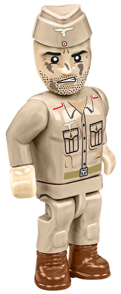 Figurka artylerzysty Luftwaffe – W zestawie znajdziesz figurkę żołnierza ubranego w klasyczny piaskowy mundur. Figurka artylerzysty została wyposażona trzema pociskami artyleryjskimi wiernie odwzorowanymi w skali klockowej. To wojak charakterystycznej furażerce, który wygląda na frontowego weterana i doświadczonego żołnierza.