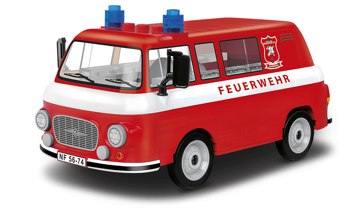 Z zestawu klocków konstrukcyjnych COBI zawierającego aż 151 elementów wybudujesz samochód marki Barkas w wersji dla straży pożarnej. Model został wiernie odwzorowany w skali 1:35. W zestawie zrezygnowano całkowicie z naklejek. Klocki zostały pokryte wysokiej jakości nadrukami, które nie ścierają się nawet podczas intensywnej zabawy. Zestaw ma przemyślaną zwartą konstrukcję oraz ruchome koła.