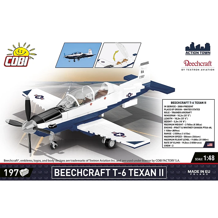Przenieś się do świata lotnictwa i zbuduj własny model T-6 Texan II — samolotu, który od wielu lat stanowi nieodłączny element szkolenia pilotów na całym świecie. Poczuj satysfakcję z konstruowania precyzyjnego modelu maszyny, która służy nie tylko w Stanach Zjednoczonych, ale także w wielu innych krajach, szkoląc nowych bohaterów powietrznych.