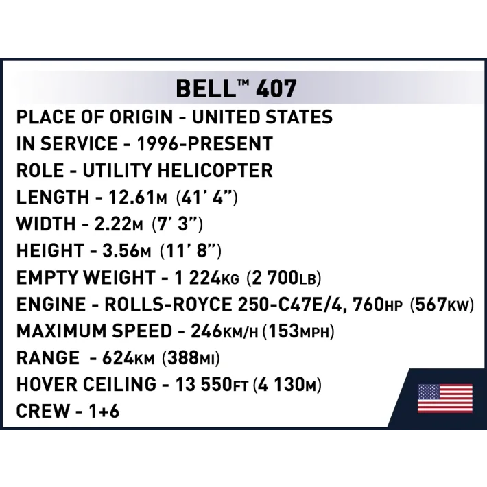 Dzięki szczegółowym detalom i nowym elementom, takim jak specjalnie zaprojektowany dla tego zestawu kokpit, Bell 407 Coast Guard będzie prawdziwą perełką w każdej kolekcji.