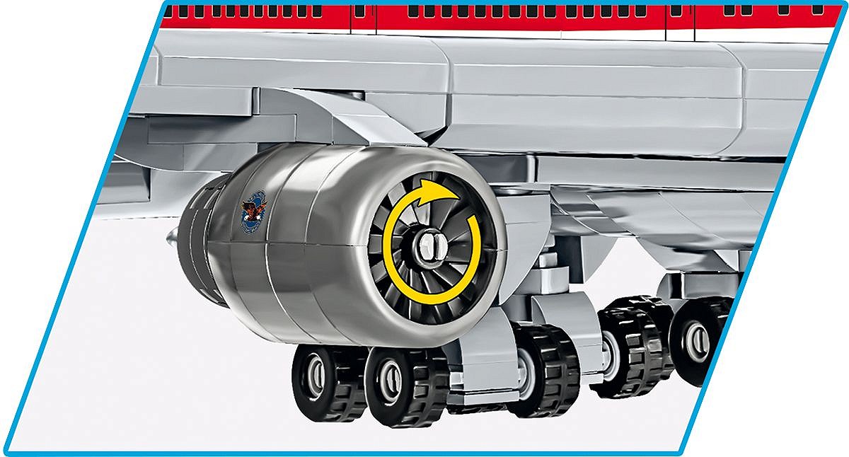 Klockowy model od COBI sięga do korzeni legendy przestworzy. Z ponad tysiąca elementów powstaje szczegółowy model w skali 1:144, którego malowanie nawiązuje do historycznego pierwszego lotu słynnego odrzutowca. Specjalne zaprojektowane elementy oraz wysokiej jakości nadruki sprawiają, że model zachwyci nie tylko klockowych modelarzy, ale również pasjonatów lotnictwa cywilnego w każdym wieku! Po zbudowaniu samolot ma aż 46 cm długości i rozpiętość skrzydeł wynoszącą 42 cm! W silnikach znajdują się ruchome turbiny, którymi można poruszać. Buduj historię lotnictwa cywilnego, klocek po klocku!