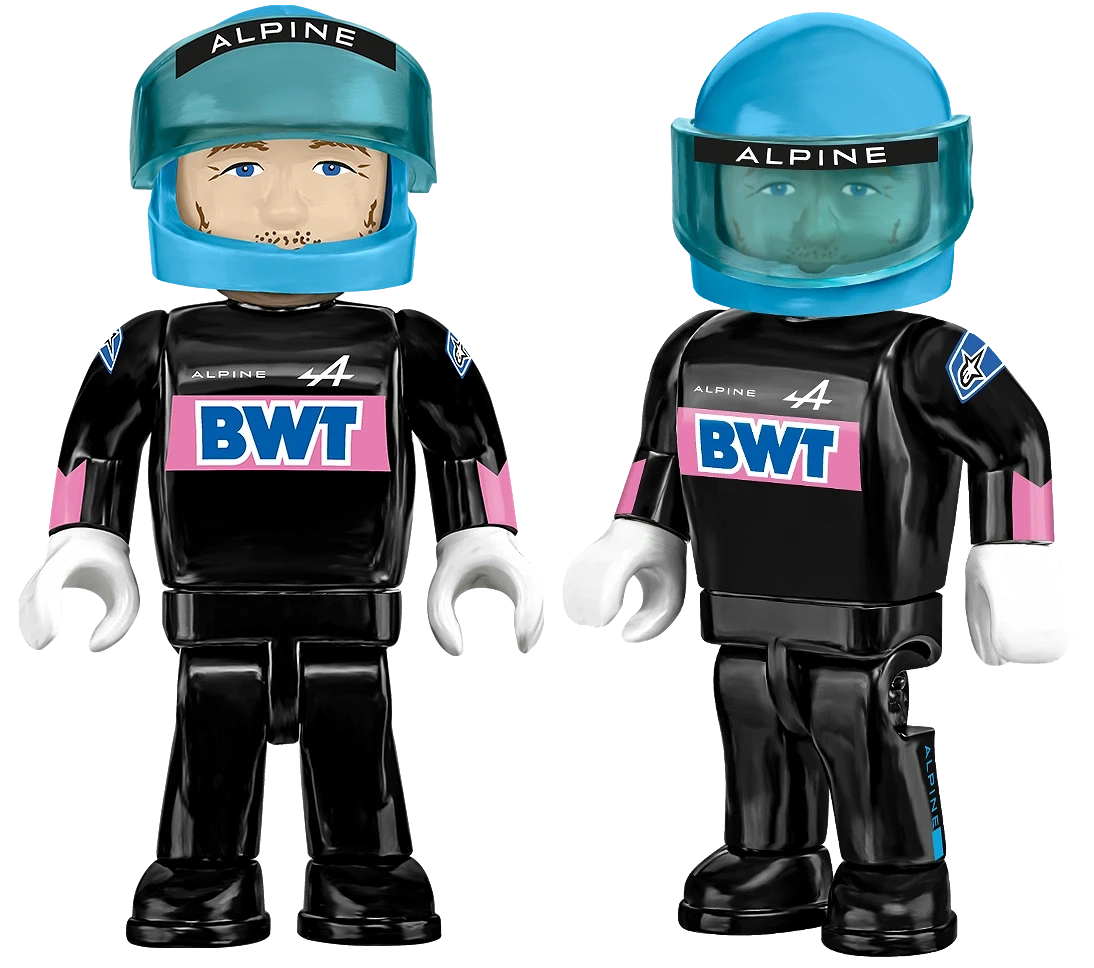 • Figurka kierowcy w kompletnym stroju – W zestawie znajdziesz figurkę kierowcy w pełnym stroju teamu Alpine F1, która doda jeszcze większego realizmu Twojemu modelowi. Poczuj się jak część zespołu, umieść kierowcę w bolidzie i przygotuj maszynę do wyścigu!