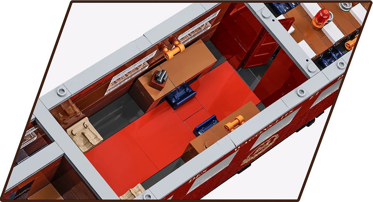 Mierzący prawie 60 centymetrów wagon, jest zupełnie nowym otwarciem w serii kolejowej od COBI. Za jego wyprofilowanymi burtami znajduje się doskonale odwzorowane wnętrze, które można bez problemu zobaczyć po zdjęciu dachu.