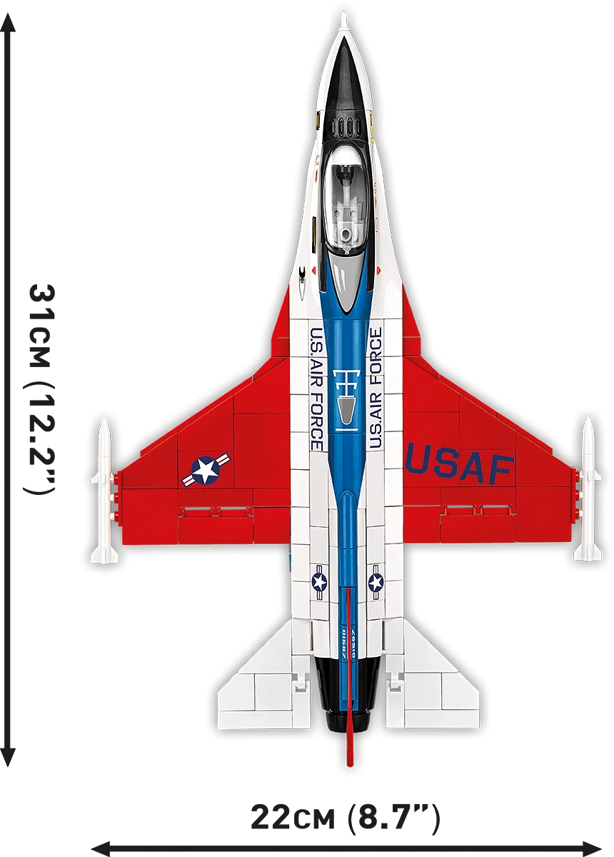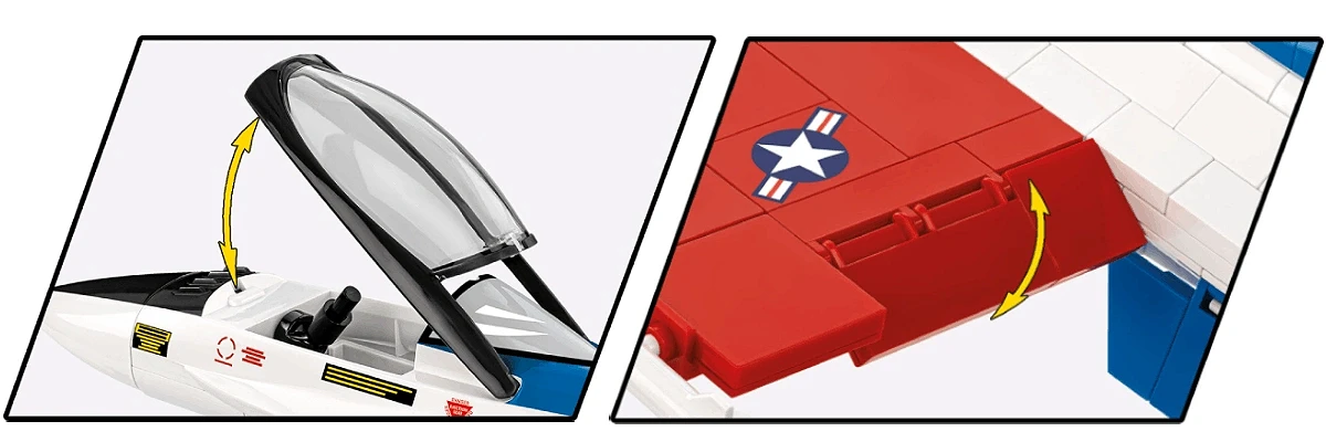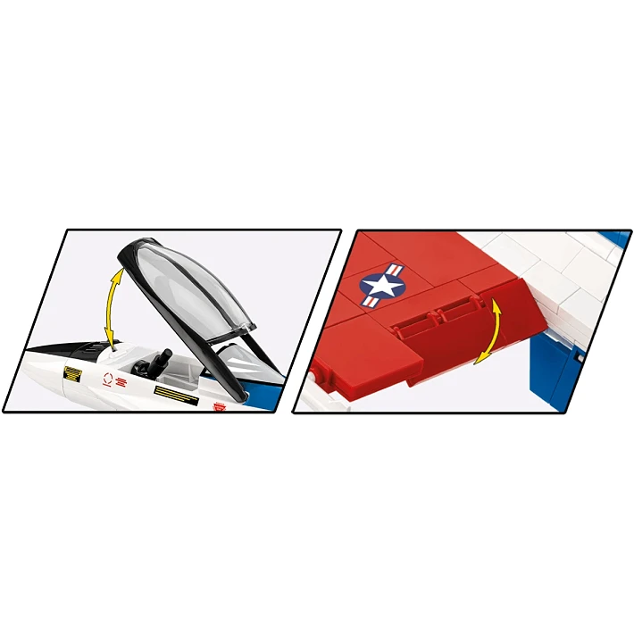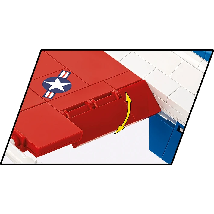 Zestaw w skali 1:48 - Model w wersji testowej został zaprojektowany w skali 1:48, co sprawia, że jest wystarczająco duży, by docenić jego szczegóły, a jednocześnie na tyle kompaktowy, by łatwo go wyeksponować. Klocki są pokryte wysokiej jakości nadrukami, które wiernie odwzorowują emblematy US Air Force, a kabina pilota, wykonana w technologii dwukolorowego wtrysku, dodaje realizmu całemu zestawowi.