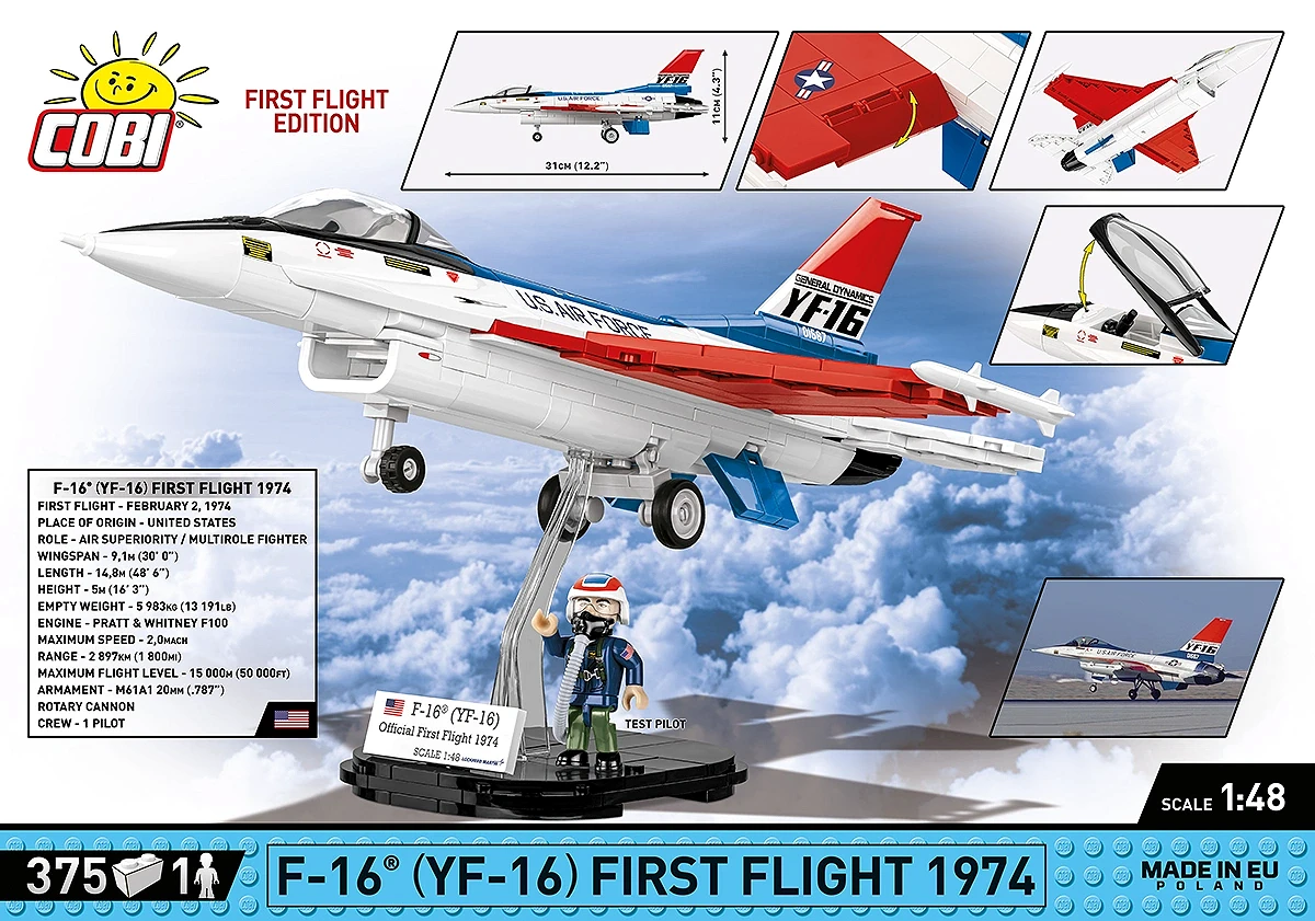 Ten zestaw jest hołdem dla pierwszego, testowego lotu F-16, który odbył się 2 lutego 1974 roku! Pomimo upływu ponad pięćdziesięciu lat od jego oblotu, dzięki systematycznemu rozwojowi i zwiększaniu możliwości bojowych, samolot ten wciąż zachowuje wysokie walory bojowe i będzie stanowił wyposażenie amerykańskich sił powietrznych co najmniej do 2030 roku, a w innych państwach nawet dłużej.