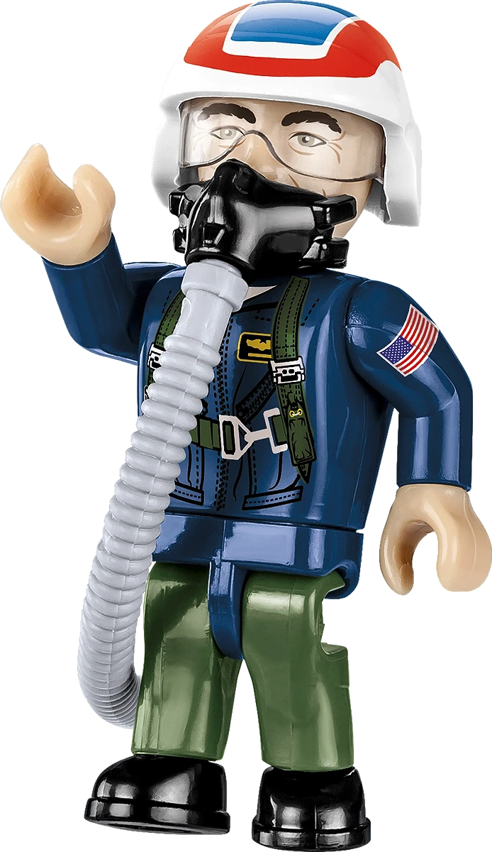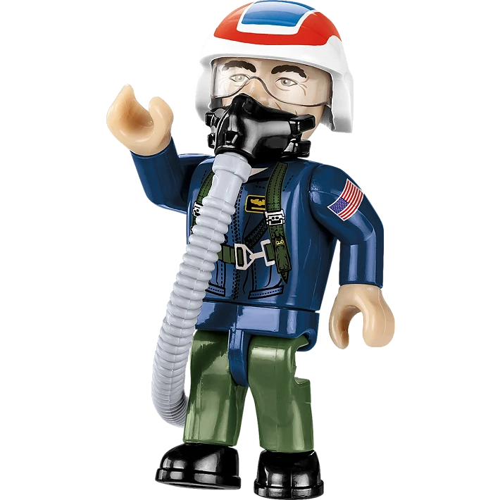 Figurka pilota - Aby podkreślić historyczny kontekst, do modelu dołączona jest figurka pilota w charakterystycznym kombinezonie oblatywacza, kasku i masce tlenowej z wężykiem. To prawdziwy ukłon w stronę prototypowego F-16, które zadebiutowało w 1974 roku.