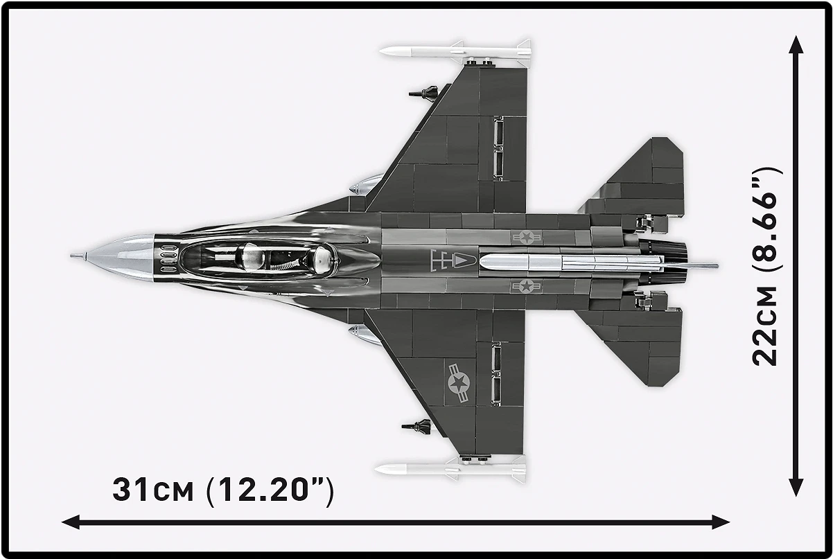 436 elementów – Zestaw składa się z precyzyjnie zaprojektowanych części, które pozwalają odwzorować charakterystyczną sylwetkę i szczegóły samolotu F-16D Fighting Falcon.