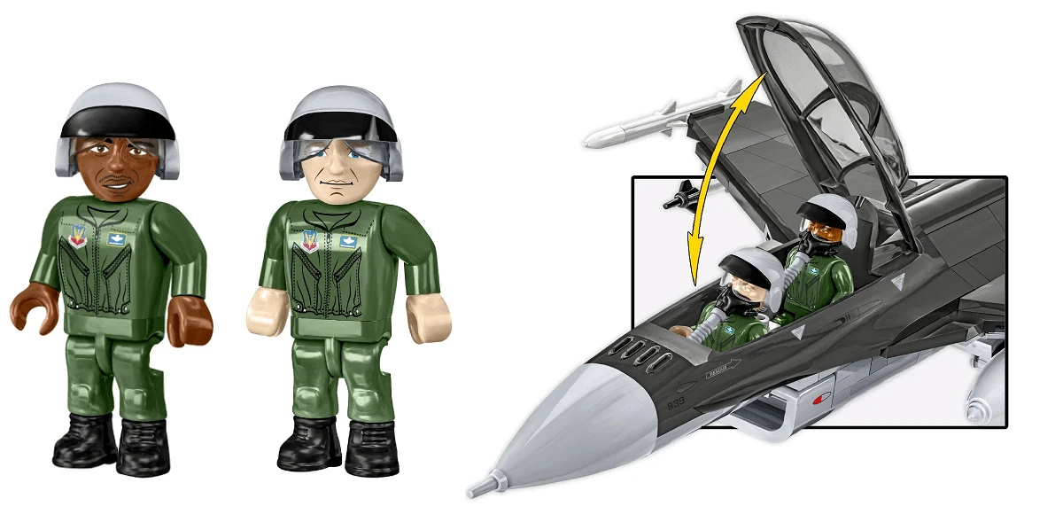 Dwie figurki – W komplecie znajdują się figurki pilota i oficera systemów uzbrojenia, ubrane w kombinezony lotnicze z nadrukami naszywek Sił Powietrznych USA, wyposażone w kaski i maski tlenowe z przewodami.