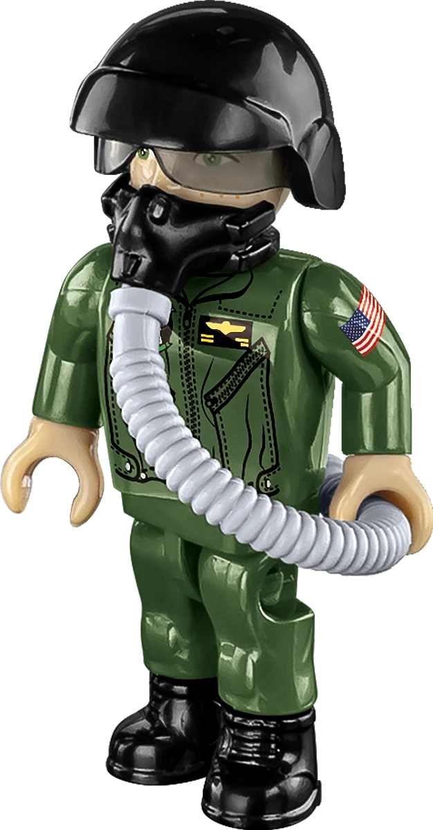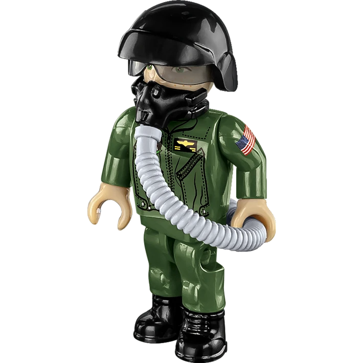 Figurka pilota - Do zestawu dołączona jest figurka pilota w odwzorowanym amerykańskim mundurze z oryginalnymi oznaczeniami, wyposażona w kask i maskę tlenową z wężykiem. Pilota można posadzić w otwieranym kokpicie lub ustawić obok modelu samolotu.
