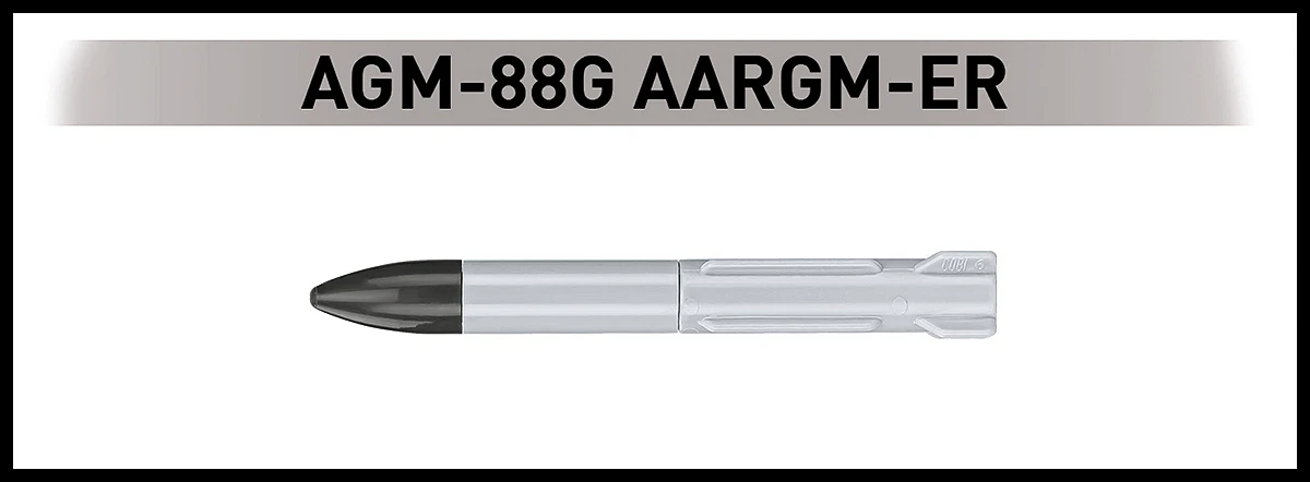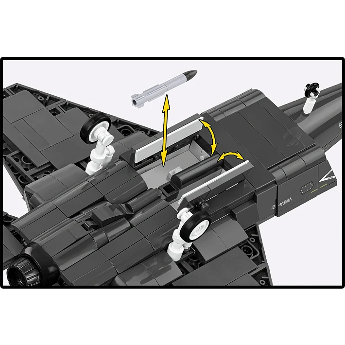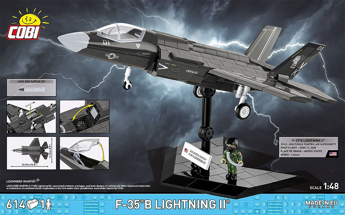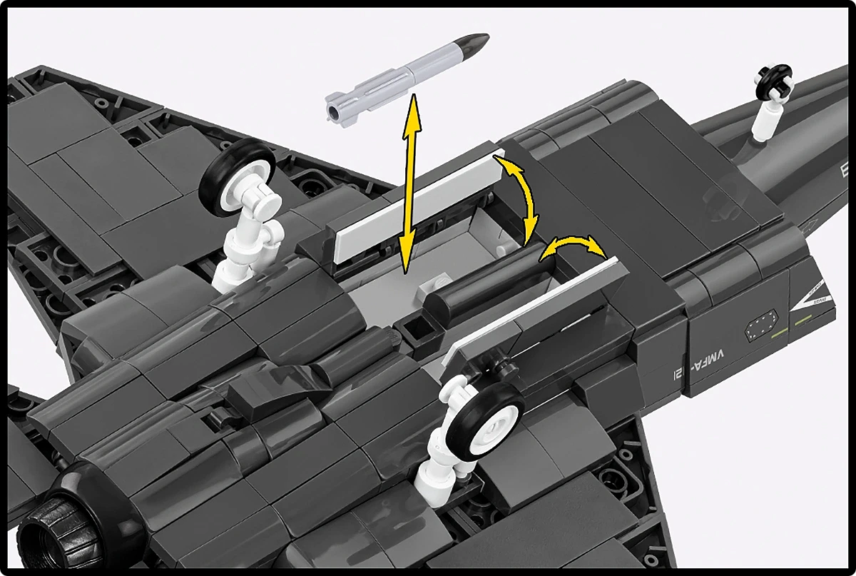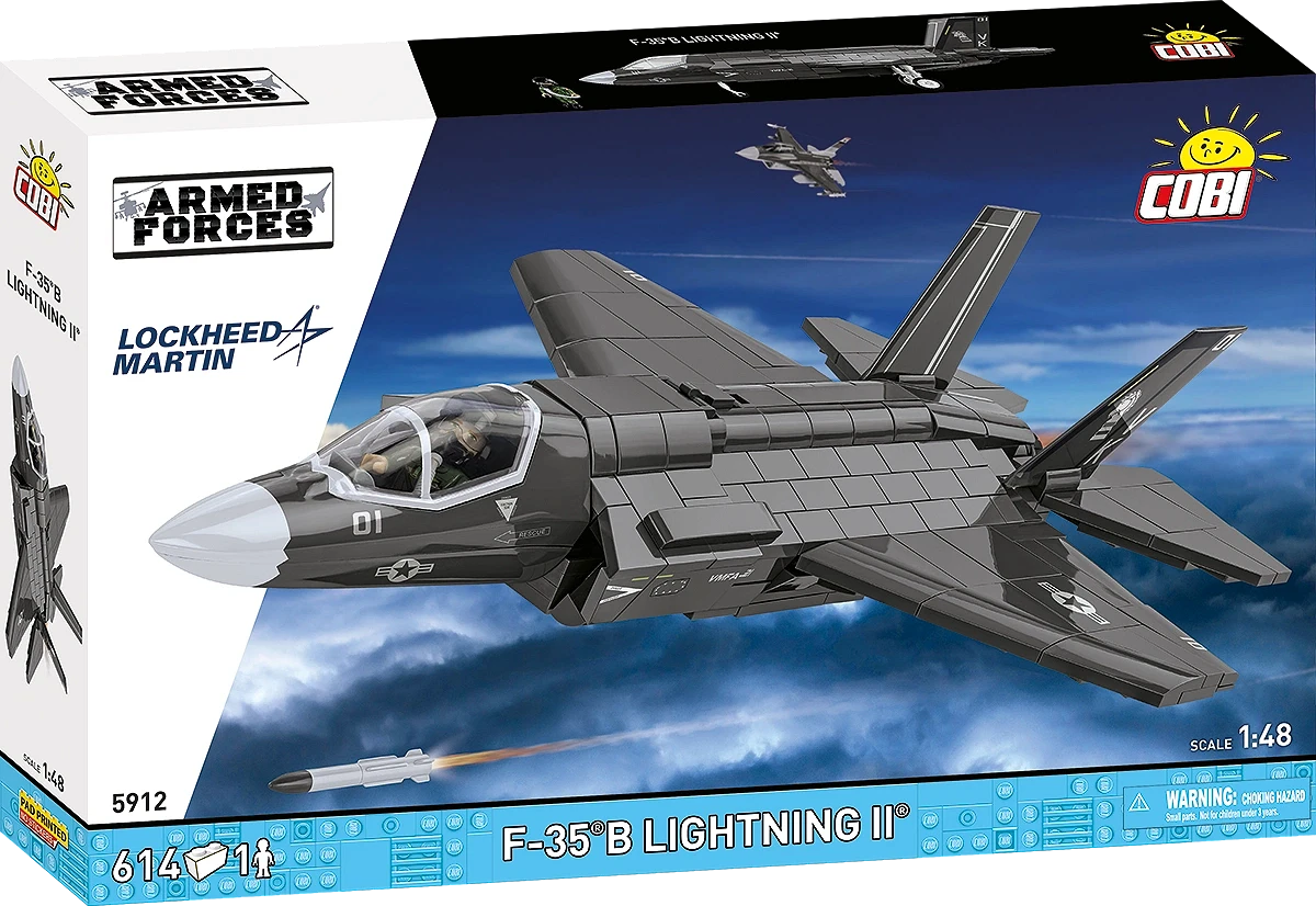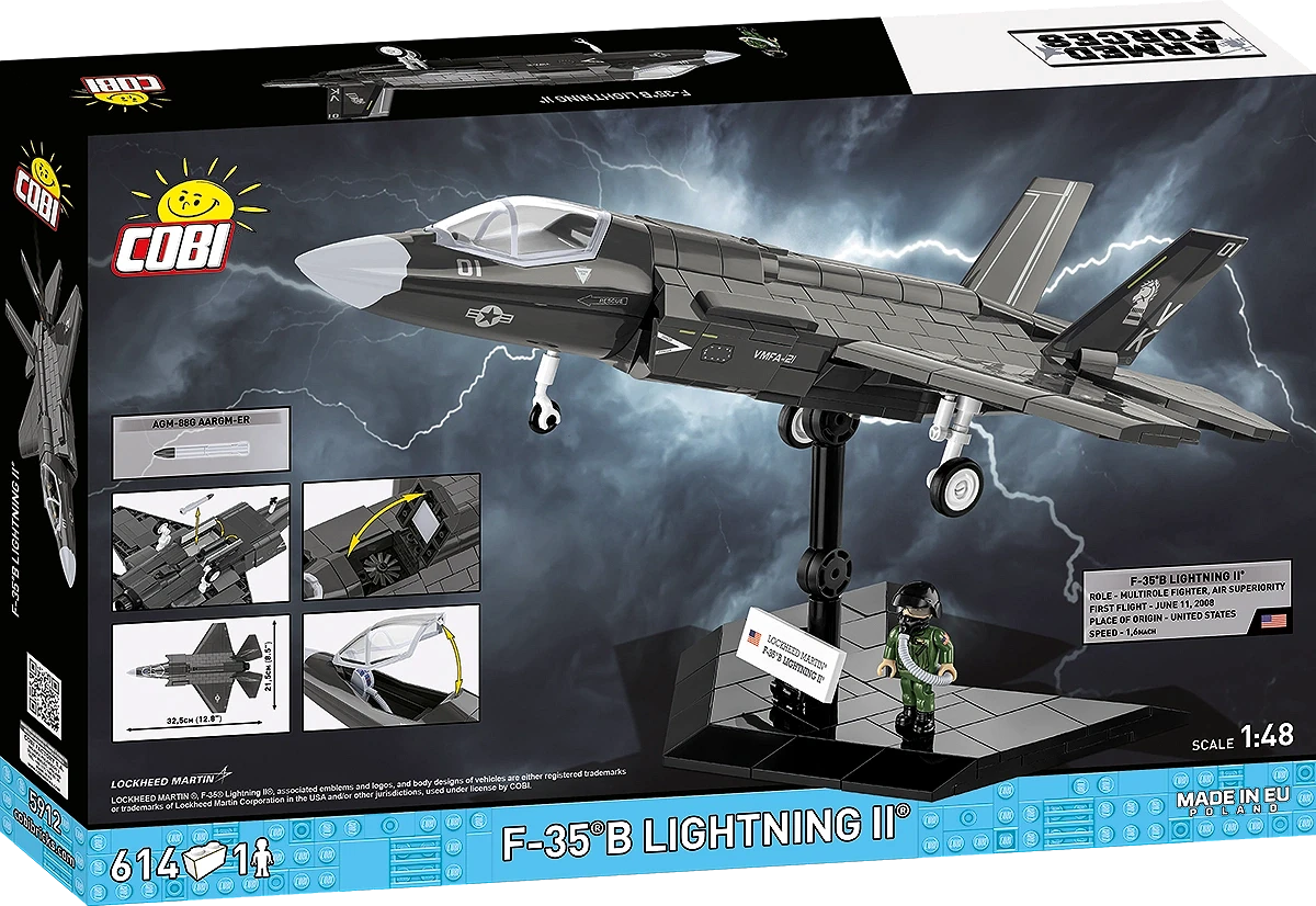 F-35B może przenosić uzbrojenie zarówno w wewnętrznych komorach (dla zachowania właściwości stealth), jak i na zewnętrznych pylonach (dla zwiększenia siły ognia). Model od COBI wyposażony jest w uzbrojenie typu AGM-88G AARGM-ER, są to pociski przeciw radarowe o przedłużonym zasięgu, przeznaczone do niszczenia celów powierzchniowych, naziemnych stacjonarnych i mobilnych stacji radarowych.