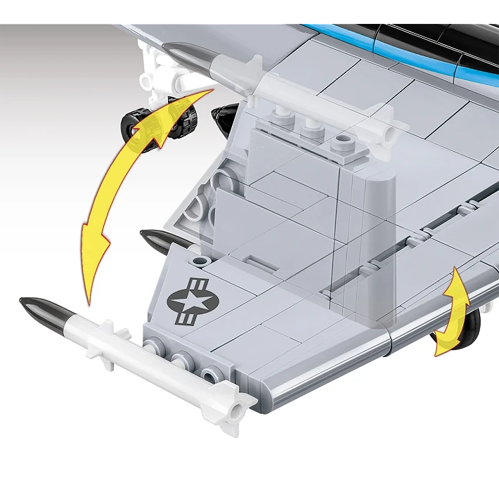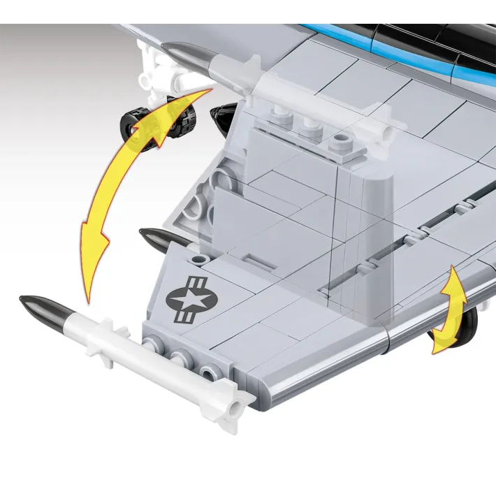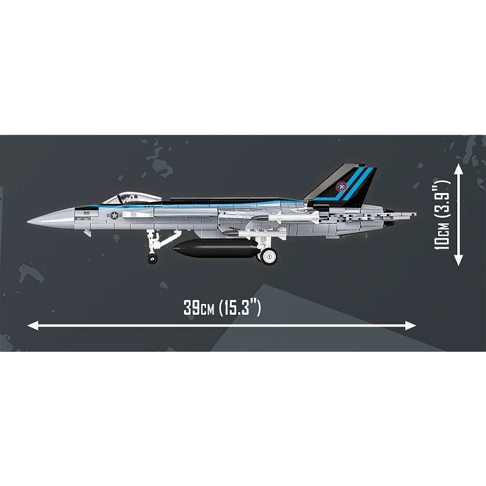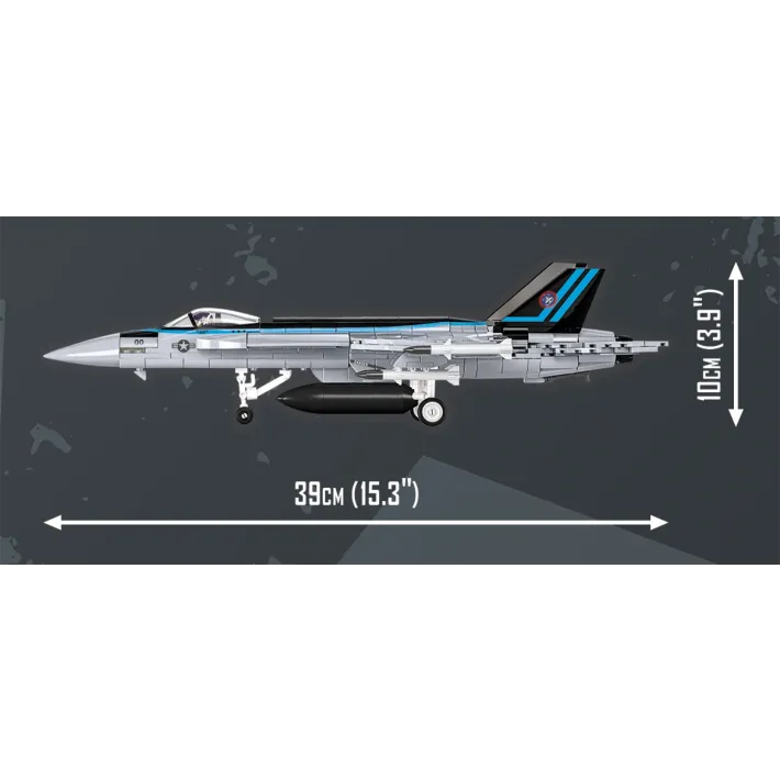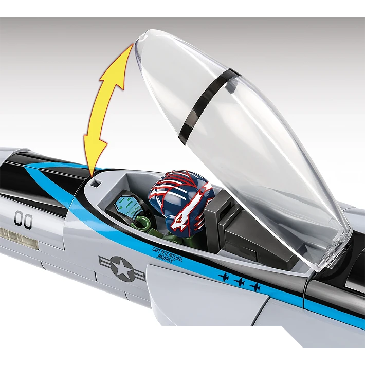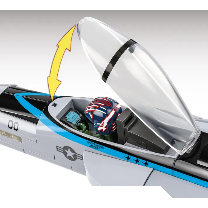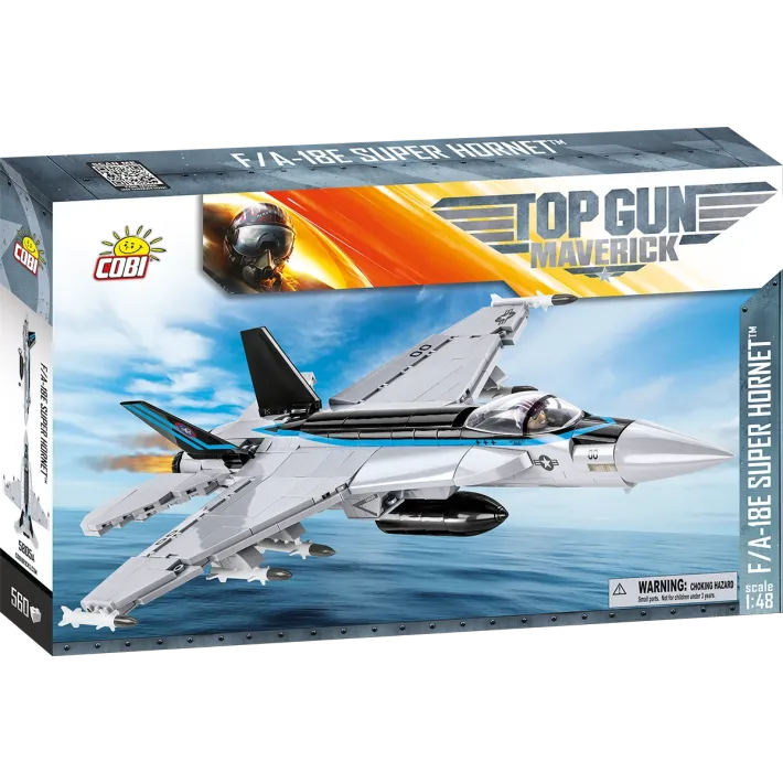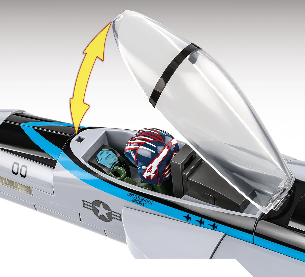 F/A-18E Super Hornet to wyjątkowy model filmowego samolotu wydany na oryginalnej licencji TOP GUN: Maverick™. Legendarny filmowy pilot i instruktor marynarki wojennej USA Pete „Maverick” Mitchell szkoli nowe pokolenie pilotów na takich właśnie maszynach. Zbuduj własnego Super Horneta w modelarskiej skali 1:48. Model został wiernie odwzorowany z 560 klocków konstrukcyjnych COBI. Najnowsze odświeżone wydanie zawiera specjalnie na tę okazję zaprojektowane cienkie stateczniki pionowe oraz ulepszenia konstrukcyjne. Teraz model wygląda jeszcze lepiej i jeszcze trudniej mu się oprzeć! W zestawie F/A-18E Super Hornet znajdziesz wysokiej jakości nadruki wiernie odwzorowujące oryginalne malowanie filmowej maszyny. Tutaj nie ma naklejek! Pod skrzydłami samolotu znajduje się pokaźny arsenał uzbrojenia. W kabinie możemy umieścić specjalny klocek-pilota. W zestawie znajduje się również klockowa podstawka ekspozycyjna oraz tabliczka zawierająca nazwę samolotu i filmowy logotyp. Ten ekskluzywny licencyjny zestaw jest idealny dla fanów filmów akcji, lotnictwa i modelarstwa klockowego! Poczuj przygodę i zbuduj to!