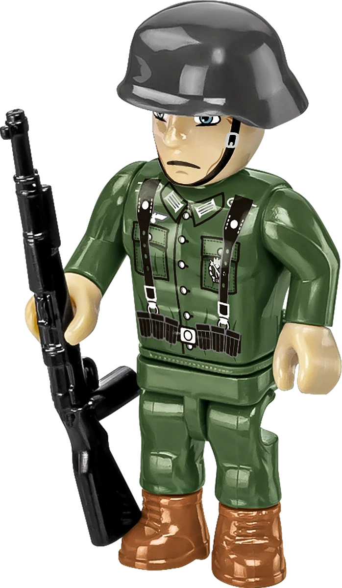 Realistyczne figurki – W zestawie znajdują się dwie figurki: niemieckiego żołnierza i radiooperatora, które dodają realizmu i mogą być wykorzystywane w dioramach, scenkach bitewnych lub po prostu jako element dekoracyjny. Te figurki świetnie pasują do schronu, a ich detale odwzorowują autentyczny wygląd żołnierzy z czasów II wojny światowej.
