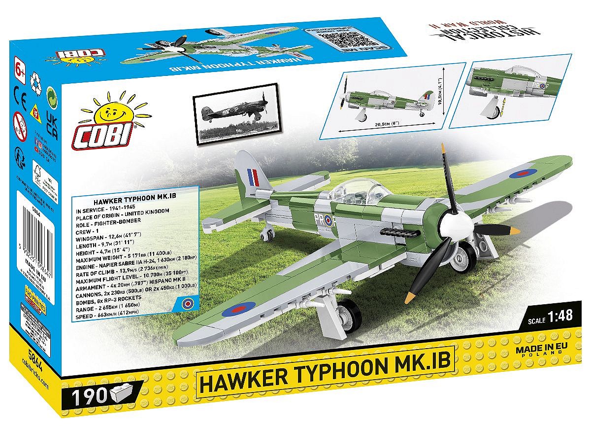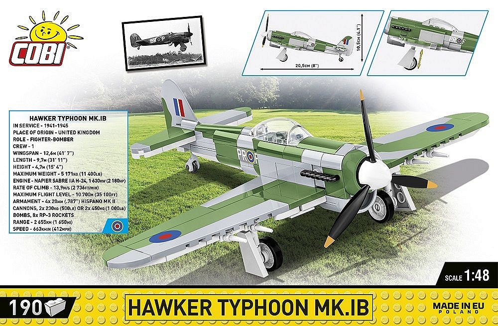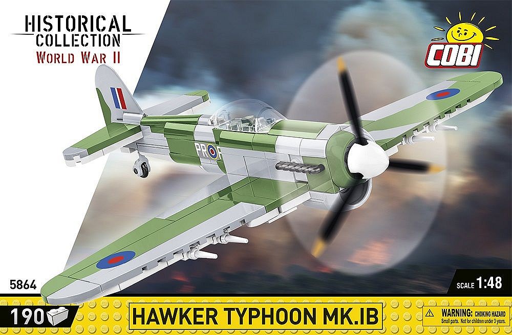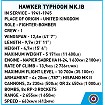 Brytyjski samolot myśliwsko-bombowy będący w służbie brytyjskiego RAF od 1941 roku. Jego głównym zadaniem było zwalczanie niemieckich samolotów myśliwskich, a także wspieranie działań na froncie poprzez ataki na cele naziemne. Typhoon był znany z osiąganej dużej prędkości maksymalnej wynoszącej ponad 660 km/h oraz potężnego uzbrojenia. Cztery działka Hispano-Suiza kal. 20 mm czyniły go skutecznym w niszczeniu celów na powierzchni ziemi.
