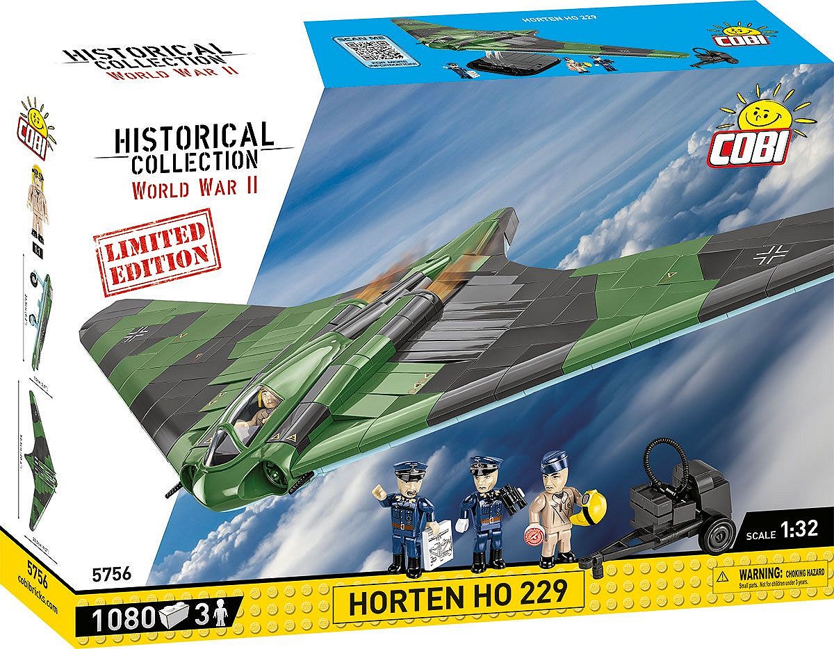 Czarna grawerowana tabliczka z nazwą zawiera indywidualny numer Edycji Limitowanej, który jest zgodny z dołączonym do zestawu papierowym certyfikatem z odręcznym podpisem CEO COBI. Na podstawce znajdują się trzy punkty do wpięcia figurek, które można wyeksponować pod samolotem. Oprócz pilota testowego w zestawie znajdziesz niezwykle starannie zaprojektowane na podstawie archiwalnych zdjęć figurki przedstawiające braci Horten, Waltera i Reimara. Autorzy projektu latającego skrzydła Ho 229 mają ze sobą klocek z planem samolotu! Do zestawu dołączony jest również lotniskowy wózek służący do rozruchu i zasilania na ziemi samolotów. Ten wyjątkowy zestaw limitowany to gratka dla fanów historii i kolekcjonerów. Buduj historię, klocek po klocku!
