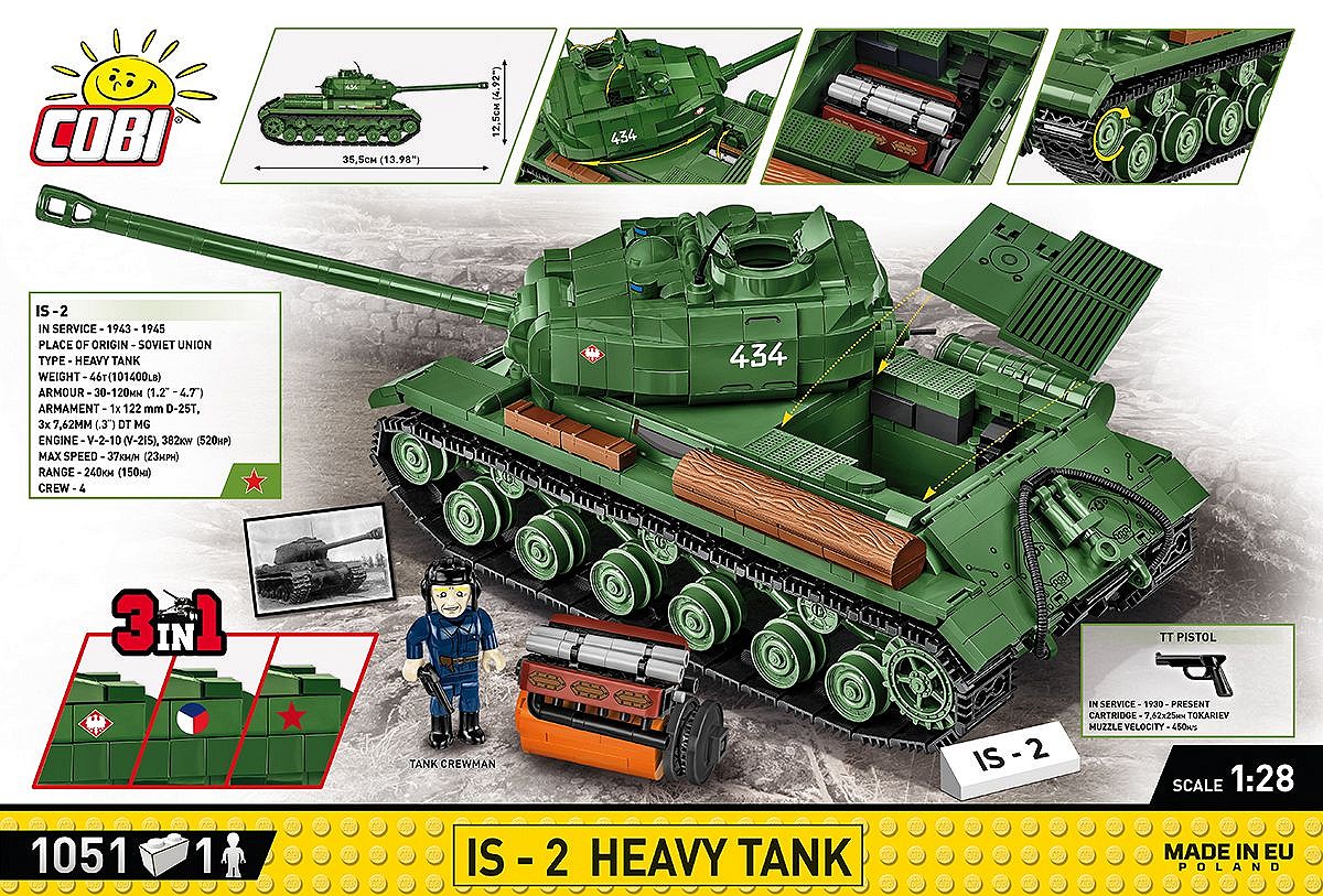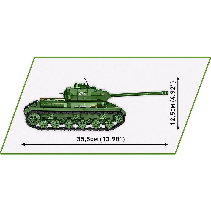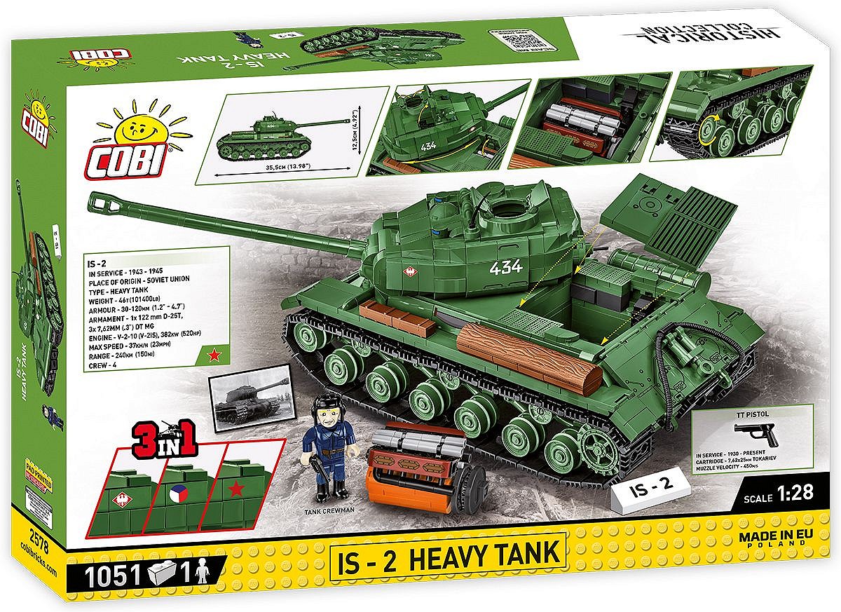 Był to jeden z najpotężniejszych czołgów ciężkich II wojny światowej. Jego kombinacja mocnego uzbrojenia, opancerzenia i zdolności manewrowych czyniła go niezwykle groźnym przeciwnikiem na polu bitwy. Czołgi ciężkie IS-2 trafiały również na wyposażenie armii sojuszniczych Związku Radzieckiego. Nie dziwią zatem odznaczenia polskie i czechosłowackie na tym sprzęcie wojskowym. Za sprawą klocków konstrukcyjnych COBI możesz odtworzyć w swoim domu ten historyczny pojazd!