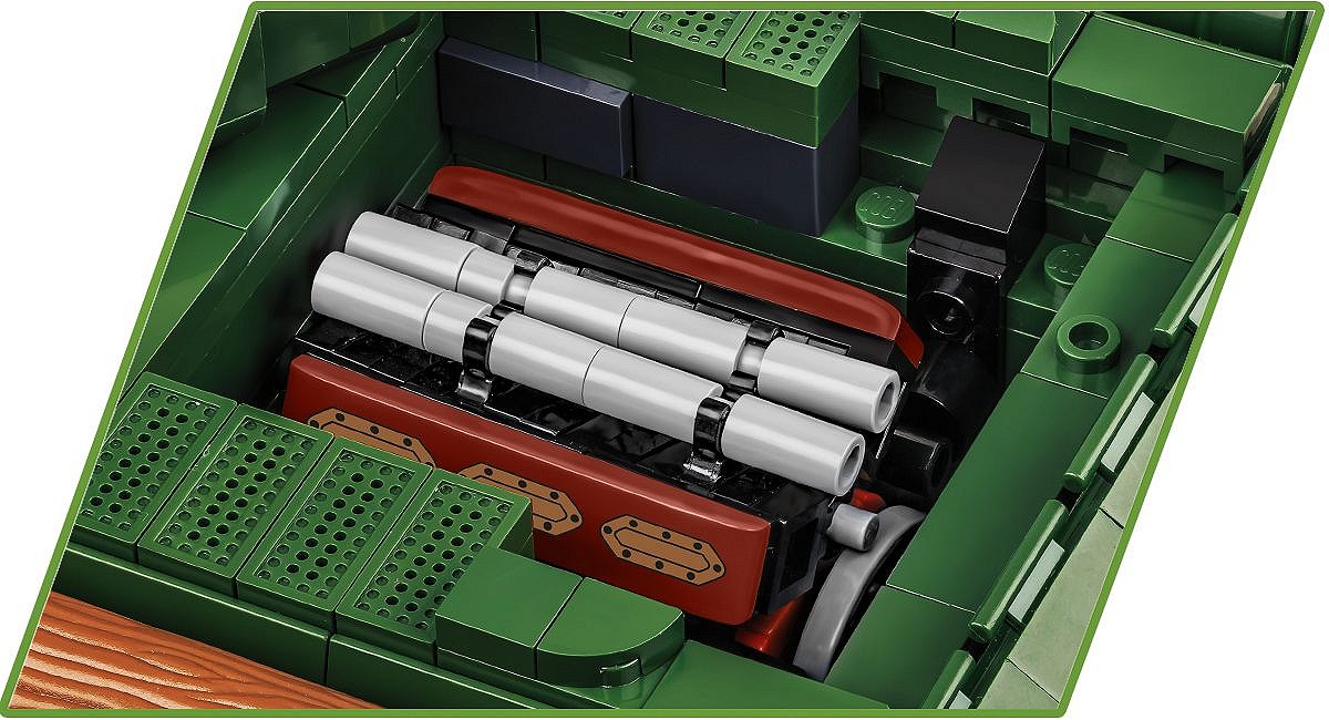 Potężny klockowy model czołgu ciężkiego IS-2 został opracowany w dużej skali 1:28 przy wykorzystaniu ponad 1000 elementów! Gotowa konstrukcja osiąga aż 35,5 cm długości i oferuje dostęp do klapy serwisowej, pod którą znajduje się wyjmowany silnik! Dodatkowe funkcjonalności modelu to: działo i wieża, którymi można poruszać, dostęp do włazów dla załogi i działająca trakcja gąsienicowa. W zestawie znajdują się klocki z oznaczeniami trzech krajów! Są to Polska, Czechosłowacja oraz Związek Radziecki. To od Ciebie zależy, w jakich barwach zbudujesz ten czołg! W modelu zastosowano wysokiej jakości trwałe nadruki. Do zestawu dołączona jest rewelacyjna figurka czołgisty w standardowym kombinezonie czołgowym z tego okresu oraz tabliczka z nazwą modelu.