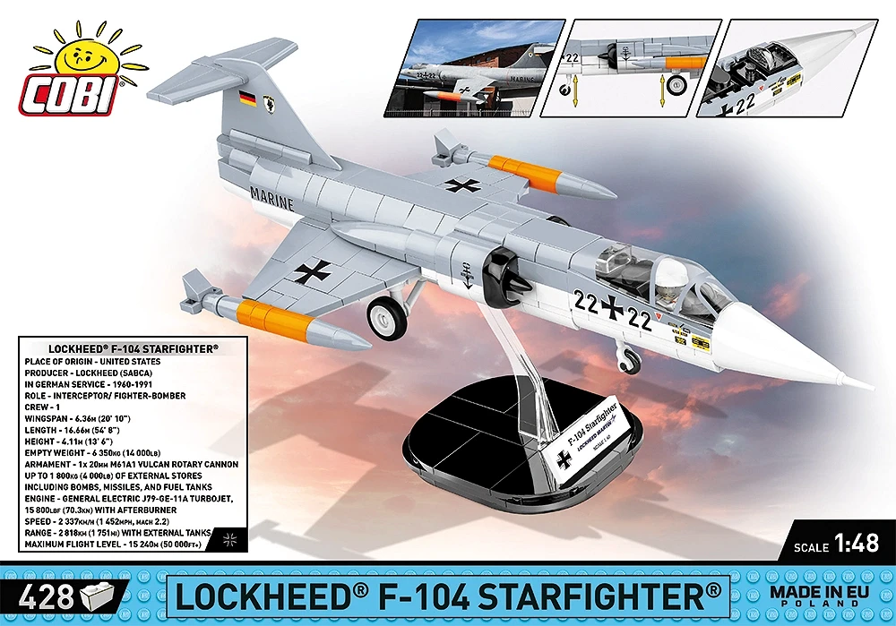 Ten model, to kolejny dowód współpracy firmy COBI ze słynnym Deutsches Marinemuseum. Oparty na egzemplarzu F-104 należącym do niemieckich sił powietrznych, był on jednym z 210 samolotów wyprodukowanych na licencji przez konsorcjum firm: Messerschmitt, Dornier, Heinkel i SIAT. Służył w dywizjonie myśliwsko-bombowym JaboG 33 stacjonującym w Büchel koło Cochem/Mosel, a dziś jest eksponatem w Deutsches Marinemuseum.