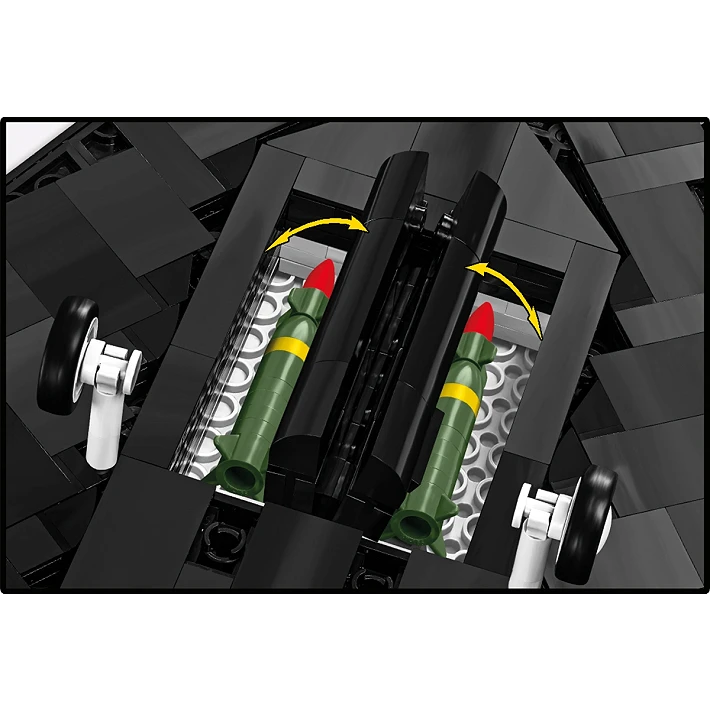 Ruchome elementy i uzbrojenie – Model wyposażono w otwieraną kabinę, regulowane lotki, ruchome koła z gumowymi oponami oraz otwierany luk bombowy, w którym można umieścić dodane do zestawu dwie bomby typu GBU-27 PAVEWAY II – to gratka dla każdego fana precyzyjnego modelarstwa.