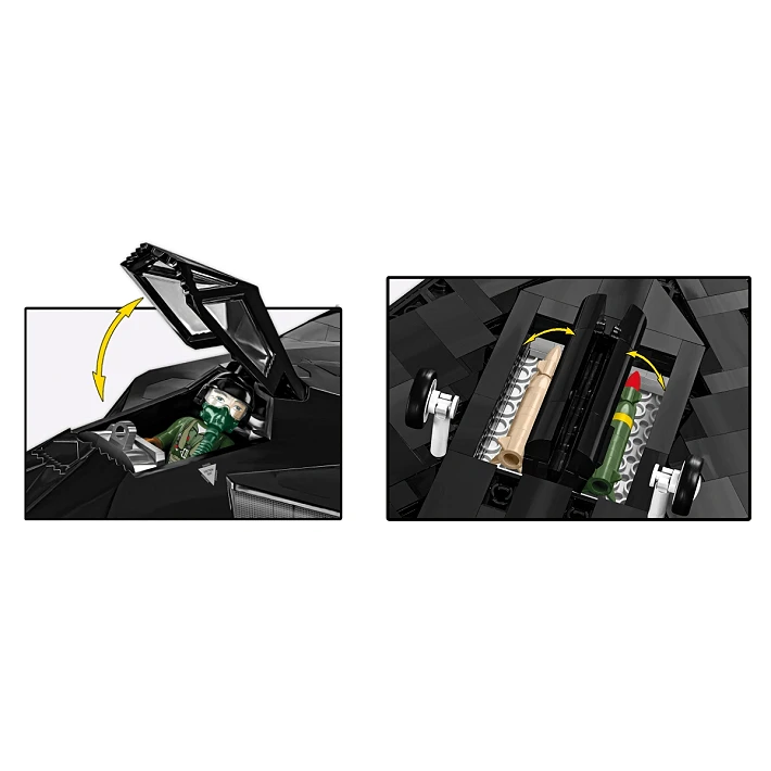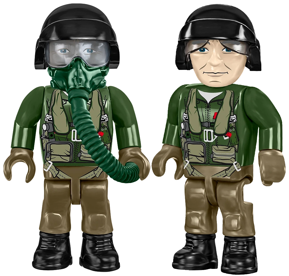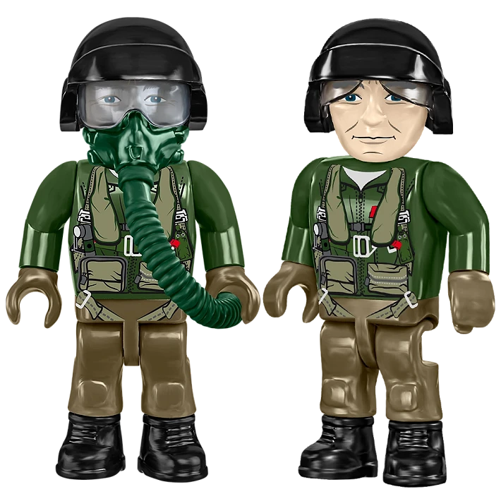 Figurka pilota – Do zestawu dołączona jest również unikalna figurka pilota w stroju z epoki – ubrany w odwzorowany kombinezon lotniczy, wyposażony w detale takie jak kask, kamizelka, pasy oraz inne charakterystyczne gadżety używane przez pilotów F-117. Figurka została zaprojektowana z dbałością o historyczną autentyczność i stanowi świetne uzupełnienie zestawu.