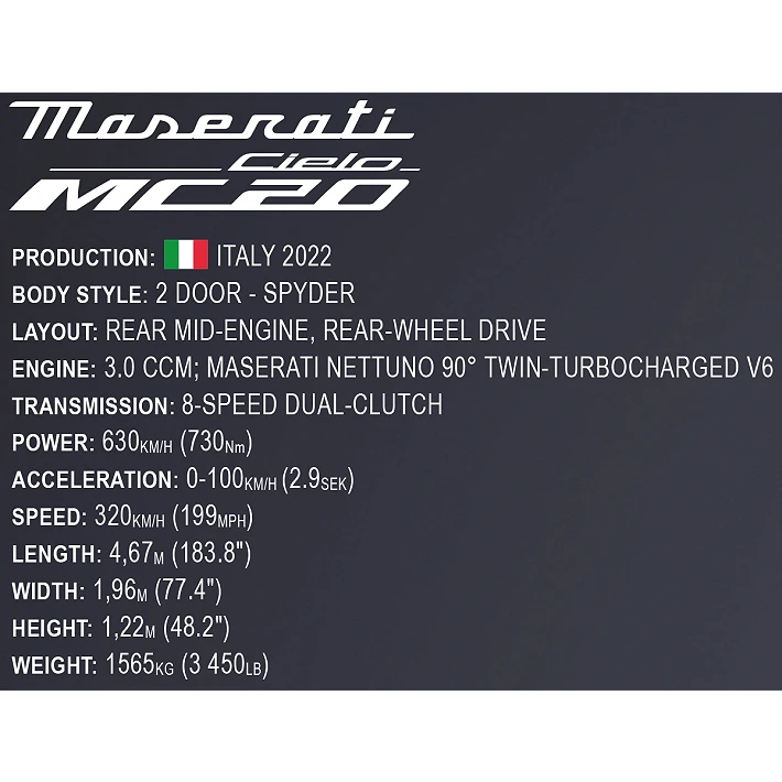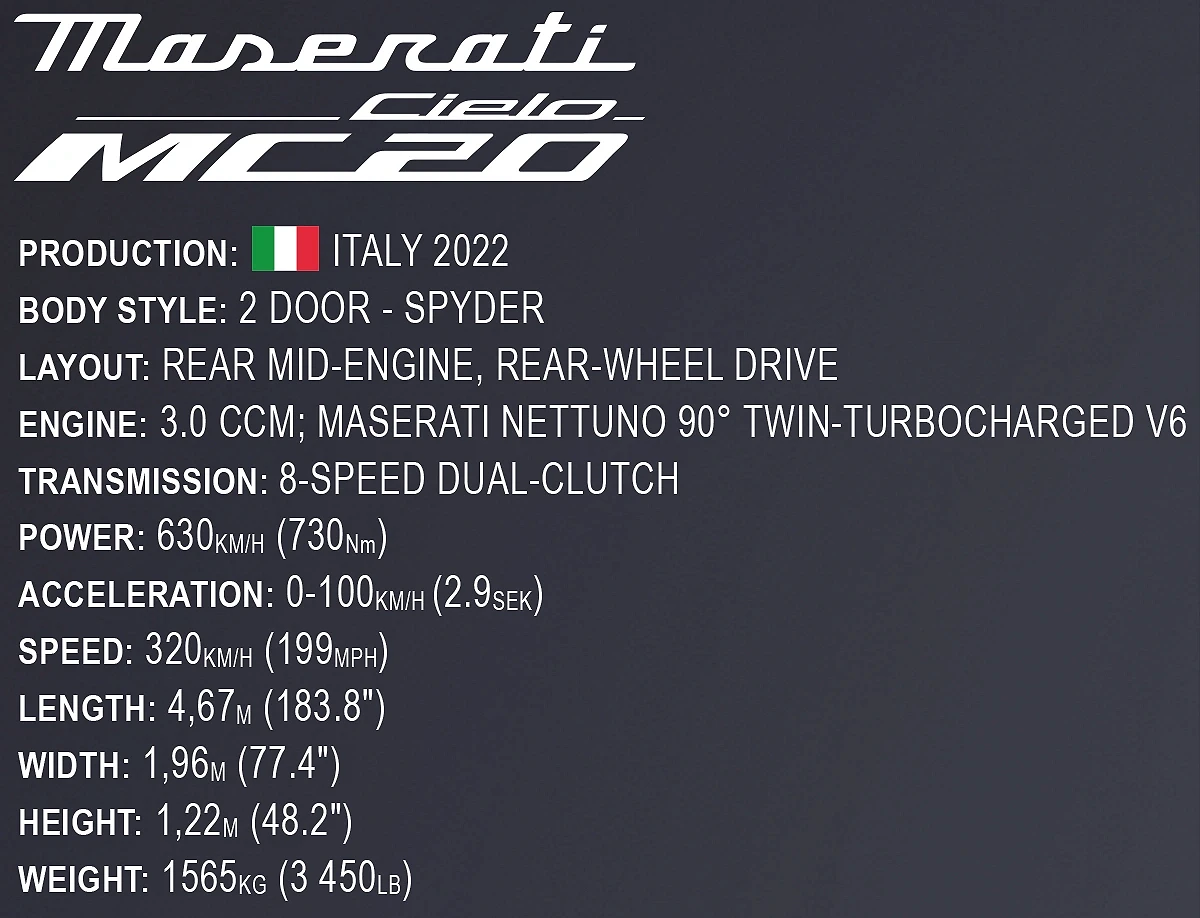 Zbuduj własny model Maserati MC20 Cielo!