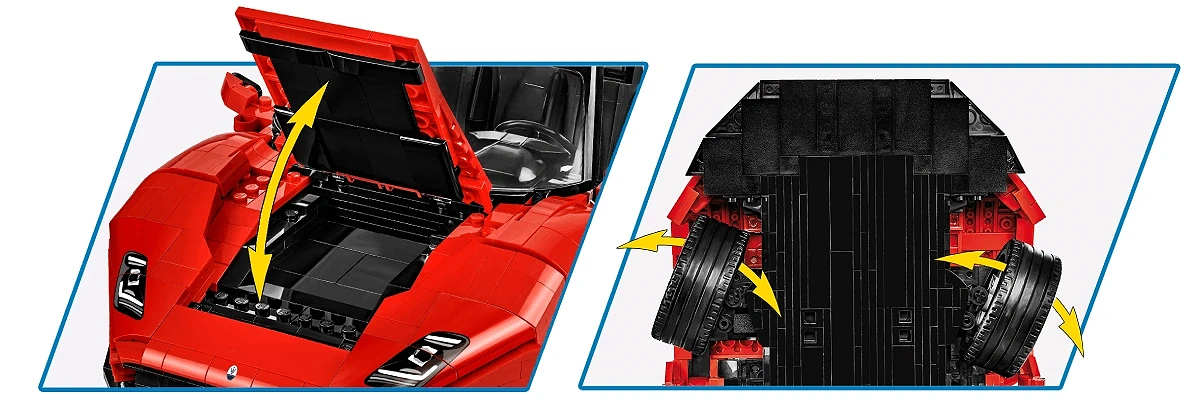 • Szeroka oferta – W ofercie COBI znajdziesz również inne zestawy, które pozwolą Ci zbudować jeszcze większą kolekcję super aut.