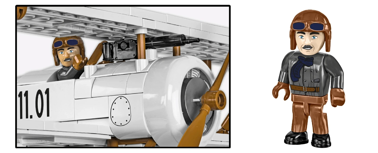 Zbuduj legendę przestworzy z czasów Wielkiej Wojny! Dzięki 274 wysokiej jakości klockom możesz zmontować precyzyjny model jednego z najważniejszych samolotów I wojny światowej, francuskiego myśliwca Nieuport 17 C.1 w polskich oznaczeniach.