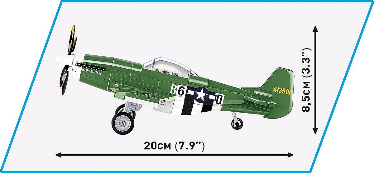 Prawdziwa legenda przestworzy, czyli amerykański myśliwiec Mustang P-51D został przez nas odwzorowany przy wykorzystaniu 150 klocków konstrukcyjnych COBI. Zdecydowaliśmy się na zupełnie nową skalę 1:48 dla drugowojennych myśliwców. Teraz bez problemu możesz zbudować obstawę dla swoich ogromnych bombowców COBI! W zestawie znajdziesz tylko wysokiej jakości nadruki nawiązujące do historycznego malowania samolotu. Licencyjny Mustang z klocków COBI to świetny kompaktowy model, który zapoczątkuje nie jedną kolekcję wśród pasjonatów lotnictwa i techniki wojskowej! To również model idealny na dobry początek przygody z polskimi klockami konstrukcyjnymi COBI!
