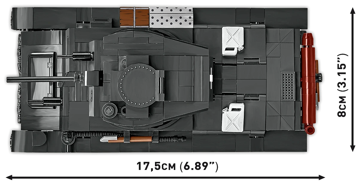 738 elementów – W zestawie znajdziemy precyzyjnie wykonane klocki, pozwalające stworzyć realistyczny model w odtworzonym, historycznym kamuflażu. Model wyróżnia się wiernością w stosunku do oryginału i dbałością o detale.