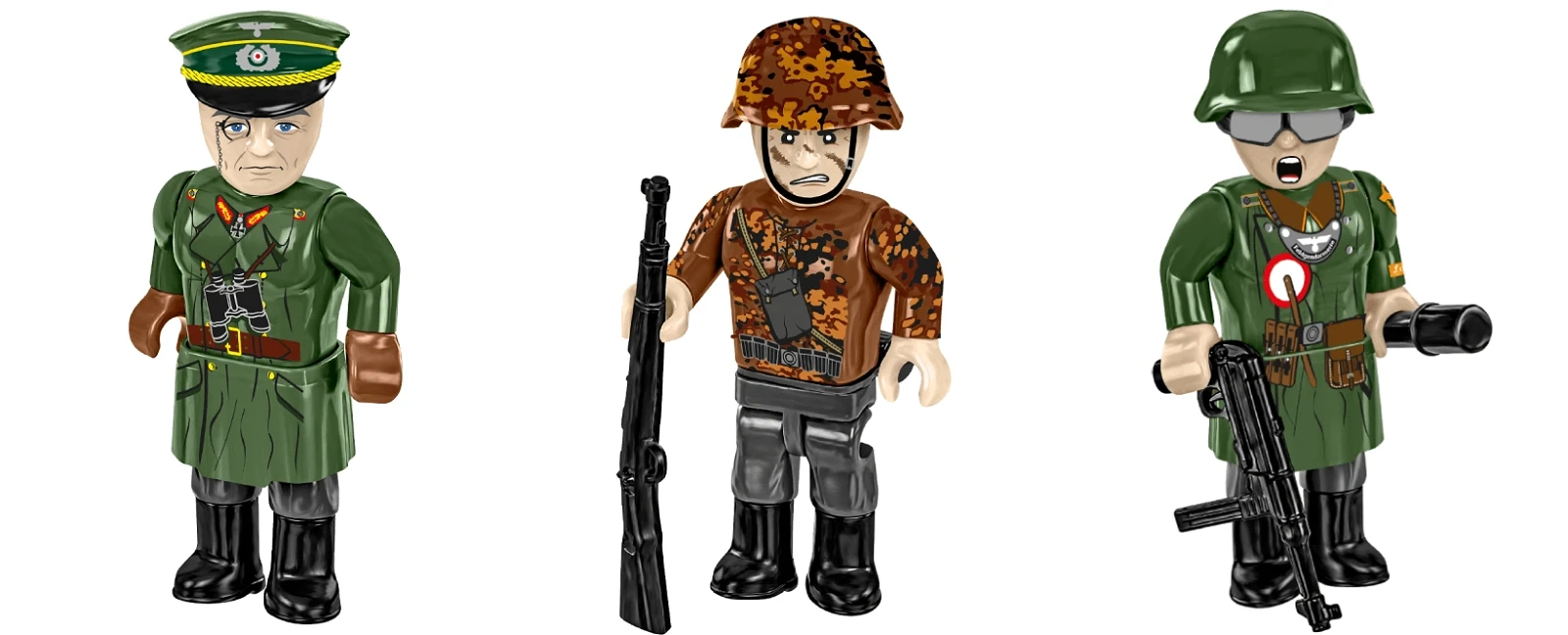 • Grenadier Pancerny - z wieloma nadrukami odwzorowującymi używany również na początku wojny kamuflaż. Figurka uzupełnia kolekcję grenadierów występujących w wielu edycjach limitowanych COBI.