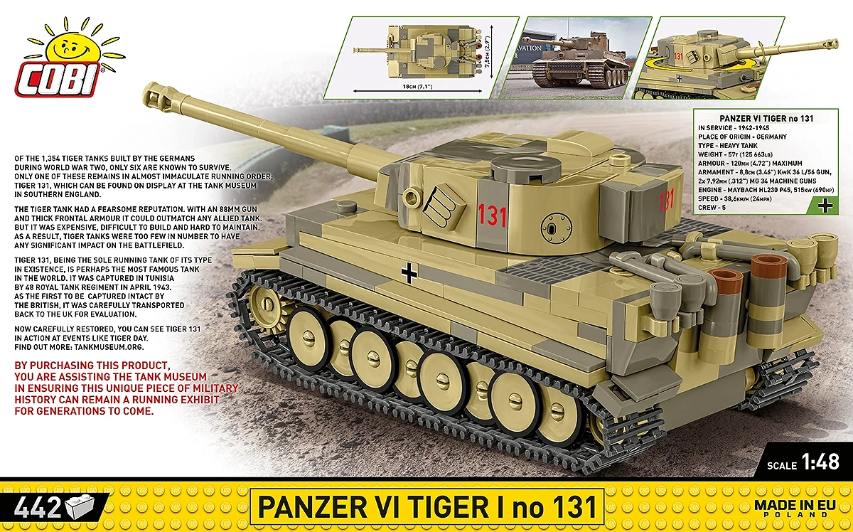 PANZER VI TIGER I no 131 to jedyny na świecie sprawny egzemplarz niemieckiego czołgu Tiger I. Znajduje się w The Tank Museum w Bovington, gdzie każdego roku przyciąga tysiące pasjonatów historii militarnej.