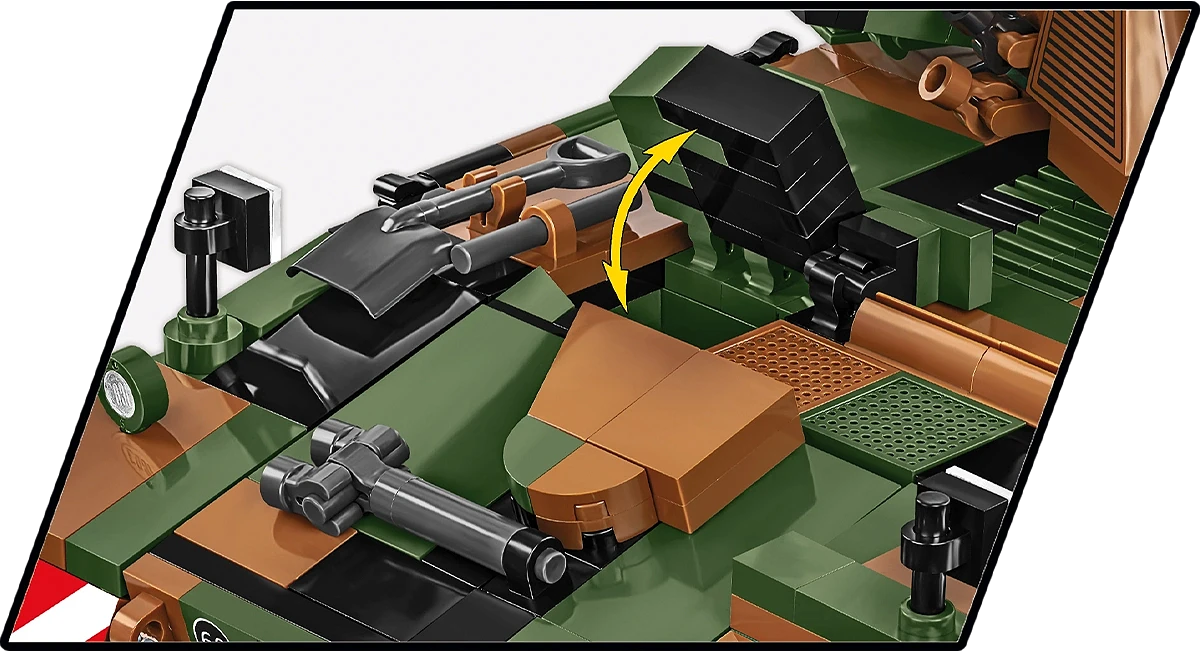 Ruchome elementy: Zestaw posiada działającą trakcję, otwierane włazy i ruchomy stelaż do stabilizacji lufy - to dodatkowe atuty, które wzmacniają realizm modelu.