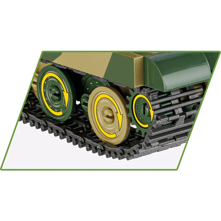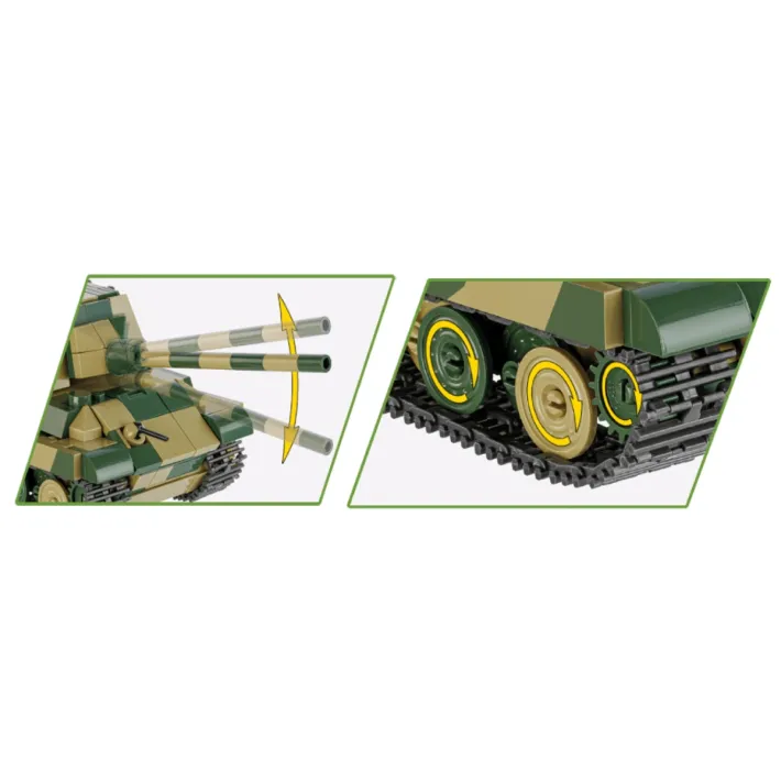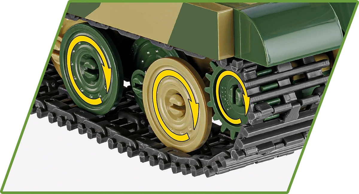 • Ruchome elementy – Wieża z ruchomą lufą działa, obracające się koła z funkcjonującą gąsienicą i nowoczesnym wzorem przypominającym te z okresu II wojny światowej.
