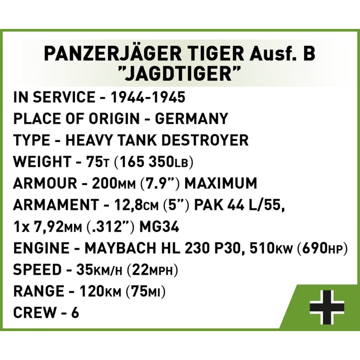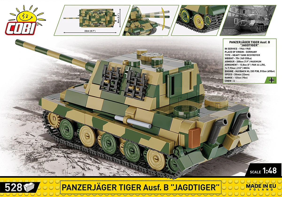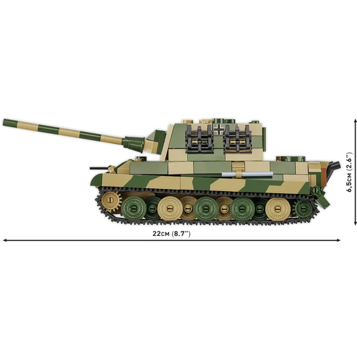 Model wykonany z wysokiej jakości klocków konstrukcyjnych, wiernie odwzorowuje historyczne szczegóły pojazdu, oferując pasjonatom historii i entuzjastom klockowego modelarstwa wyjątkową okazję do złożenia i wyeksponowania legendarnego Jagdtigera!