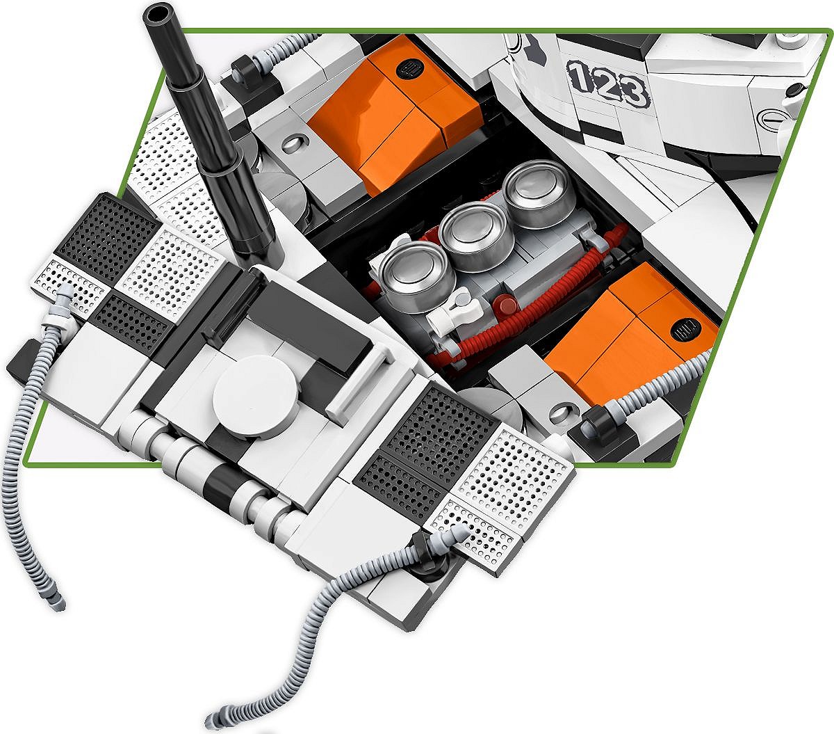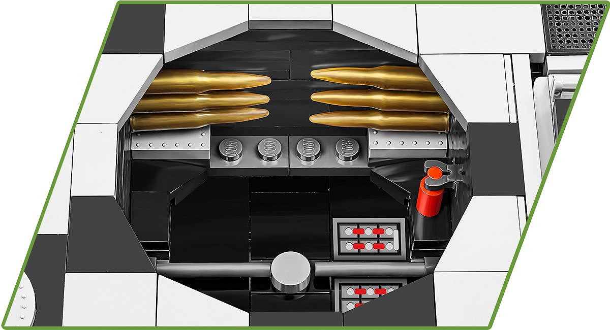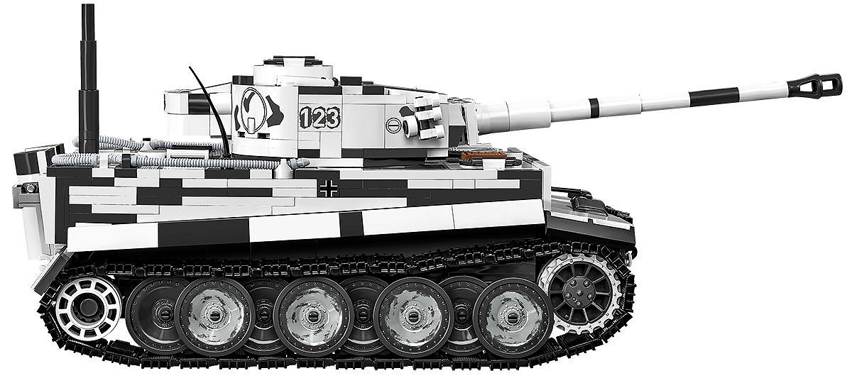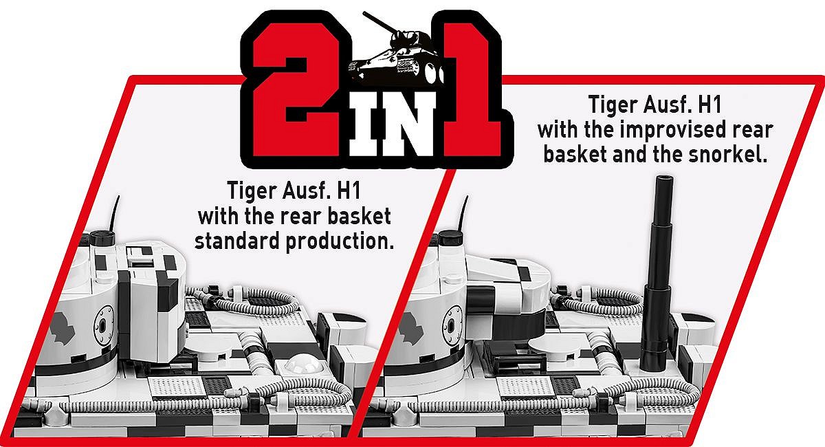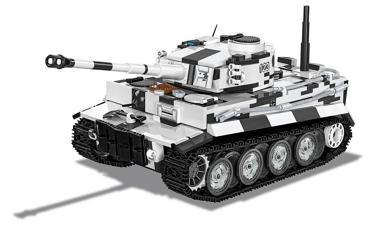 Pierwsza, wczesna wersja najsłynniejszego niemieckiego czołgu ciężkiego Tiger I w kamuflażu zimowym to coś, na co czekali klockowi modelarze i pasjonaci broni pancernej! Szczegółowo dopracowany LIMITOWANY model został zaprojektowany w skali 1:28 przy wykorzystaniu 1330 elementów i ma aż 31,5 cm długości. Model ma cechy wczesnej wersji Tigera. Budując zestaw, możesz zamontować improwizowany kosz na amunicję zaczerpnięty z czołgu Panzer III lub szerzej znaną wersję ze standardowej produkcji! Opcjonalnie możesz zamontować na pojeździe “Fajkę” (Snorkel), która w prawdziwych czołgach służyła do pokonywania przeszkód wodnych. Pod klapą serwisową lub na specjalnej podpisanej podstawce ustawisz klockowy model silnika Maybach HL 210! Model oferuje wiele opcji budowy oraz zabawy! Na uwagę zasługują również pobielone delikatnie koła, które wyglądają bardzo atrakcyjnie w połączeniu z zimowym kamuflażem. Wyjmowana wieża osłania elementy wnętrza pojazdu. Na wieży znajduje się numer taktyczny “123” Funkcjonalności modelu to: wyjmowana klockowa replika silnika, działająca trakcja gąsienicowa, działo, którym można poruszać w kierunku góra-dół oraz obracająca się wieża. W otwieranych włazach można umieścić figurki. W zestawie znajduje się również szczegółowo odwzorowana figurka dowódcy pojazdu, który jest wyposażony w słuchawki i lornetkę. Żołnierz z frontu wschodniego został wyposażony w zimowy mundur, czapkę uszankę wymienną z hełmem oraz zdobyczny radziecki pistolet maszynowy PPSz. Bardzo atrakcyjnym dodatkiem Edycji Limitowanej są drogowskazy kierujące na Leningrad i Berlin. Możesz je wyeksponować na półce lub wykorzystać przy budowie dioram, lub scenek!