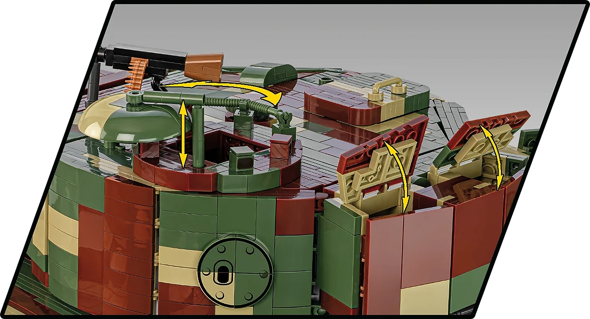 Nie zabrakło również funkcji, które zbliżają ten model do prawdziwego czołgu, takich jak obracająca się wieża, ruchome działo, otwierane włazy.