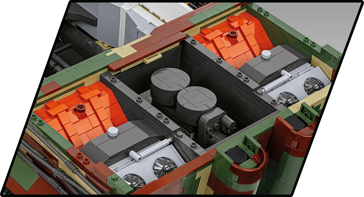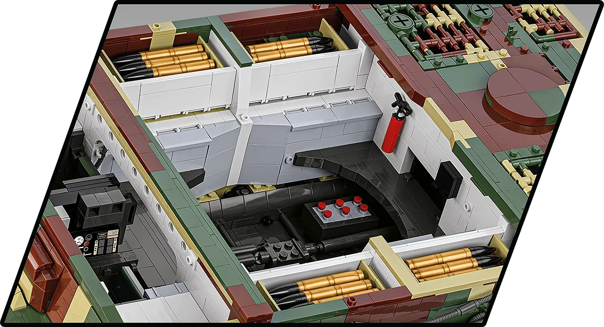 Co wyróżnia ten model? To nie tylko jego ogromne wymiary, ale również wyjątkowa dbałość o szczegóły. Wnętrze czołgu zostało odwzorowane w najdrobniejszych detalach – od przedziału z amunicją po pokrętła, przełączniki i gałki.