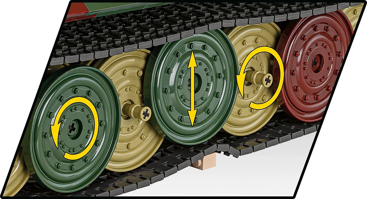Aktywne koła i gąsienice sprawiają, że całość działa w sposób, który przypomina autentyczny czołg,