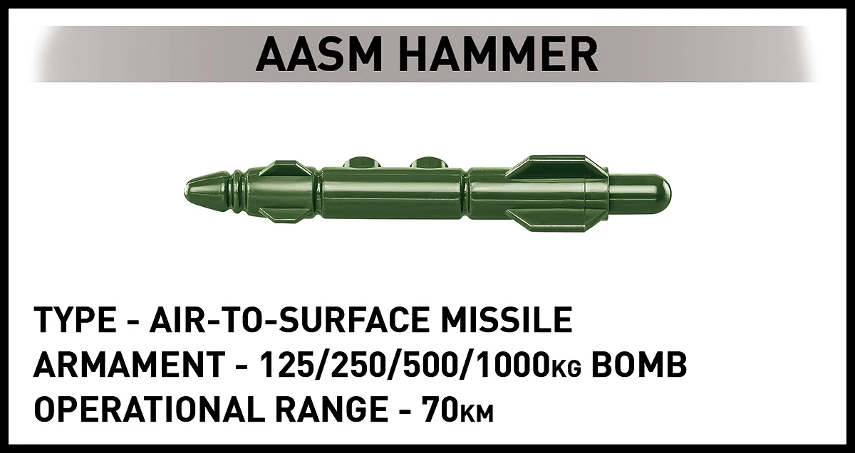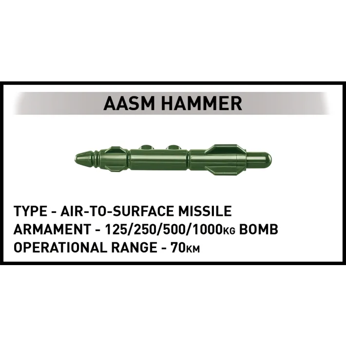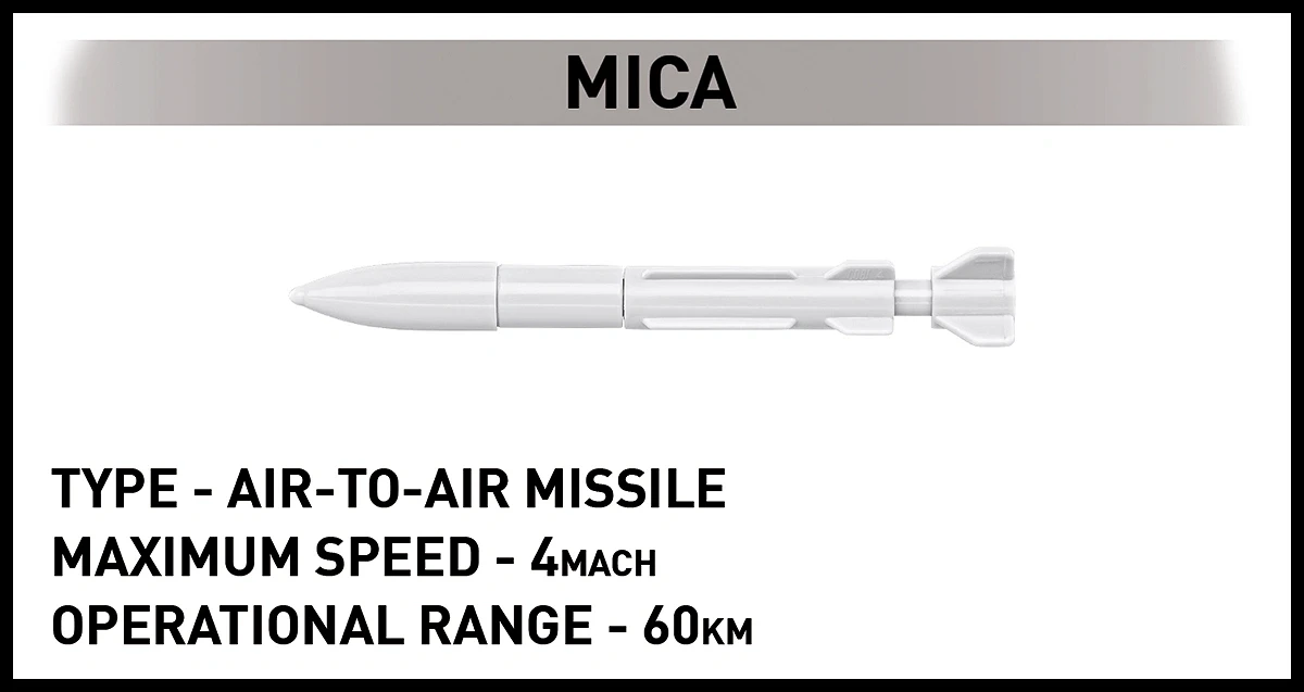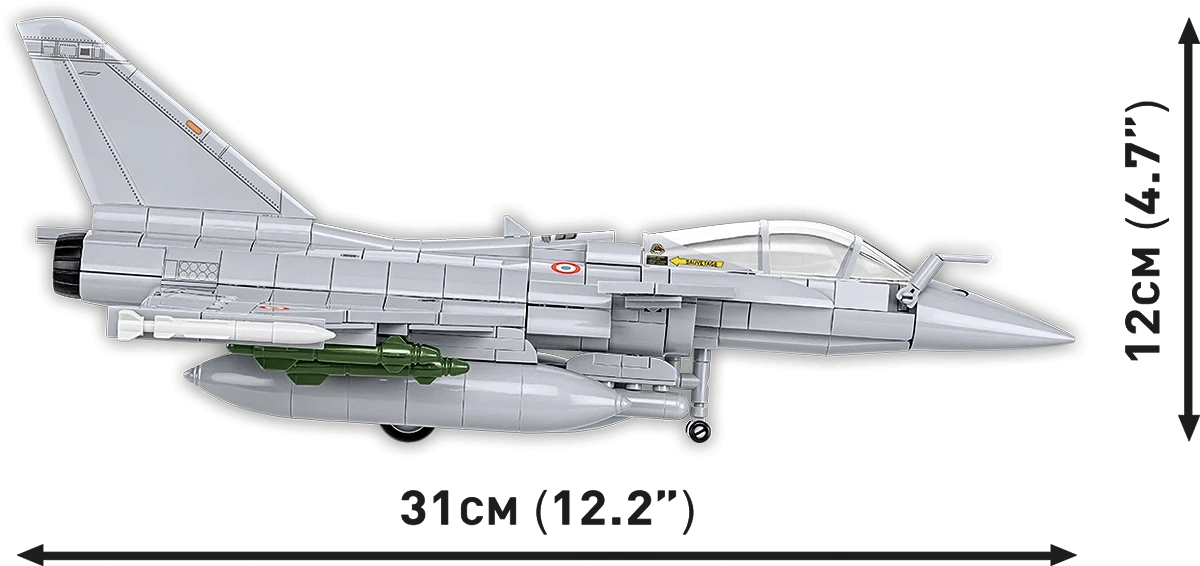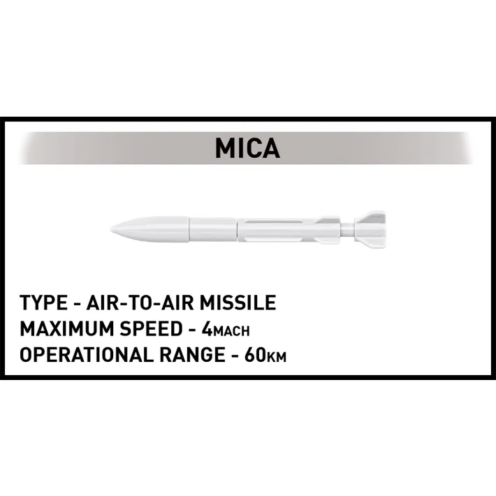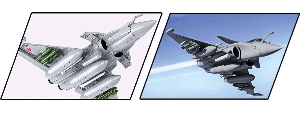 • Precyzyjne odwzorowanie detali – W pełni wiernie odwzorowane detale, od aerodynamicznego kształtu po detale podwieszonego uzbrojenia (rakiety typu MICA, METEROR, AASM HAMMER) sprawiają, że model jest wiernym odwzorowaniem tego ikonicznego samolotu.