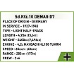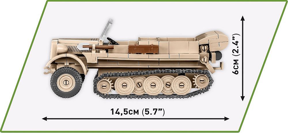 Ciągnik artyleryjski Sd.Kfz.10 został zaprojektowany z dbałością o szczegóły w modelarskiej skali 1:35 przy wykorzystaniu 290 elementów. Zawiera ruchome elementy oraz wysokiej jakości, trwałe nadruki. Zestaw doskonale uzupełnia rozwijającą się kolekcję klockowych, historycznych pojazdów wydawanych w skali 1:35. Z pewnością znajdzie miejsce w Twojej kolekcji obok ciężarówek Blitz, samochodów Horch i innych niesamowitych pojazdów wydanych w tej samej serii i skali przez COBI. W zestawie znajduje się figurka żołnierza Afrika Korps. Na pojeździe znajdują się dodatkowe akcesoria takie jak nowy rodzaj skrzynki oraz szpadel i łom.