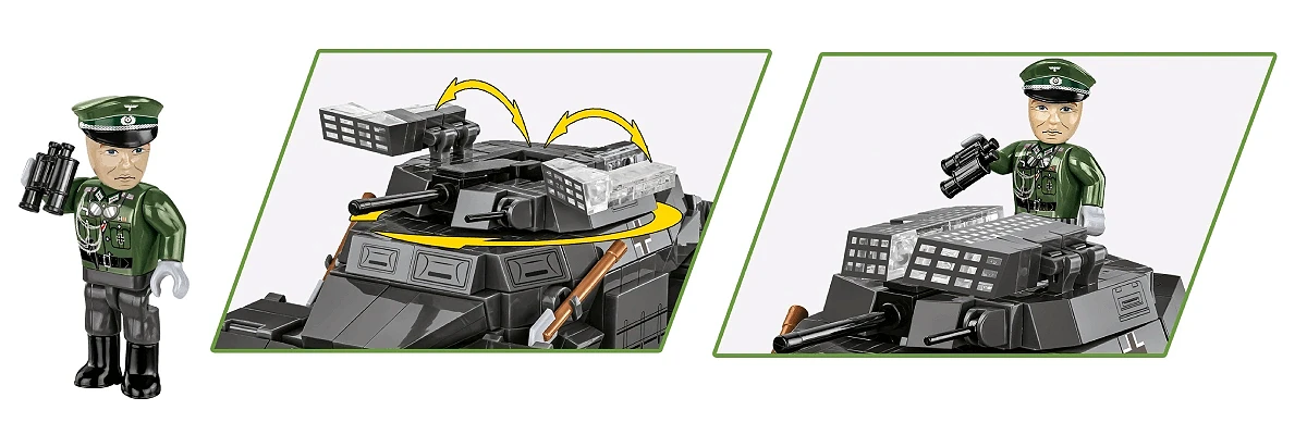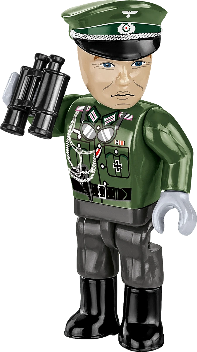 - Figurka w zestawie: W zestawie znajduje się figurka niemieckiego porucznika z lornetką, co zwiększa możliwość interaktywnej zabawy i wykorzystania modelu w dioramach.