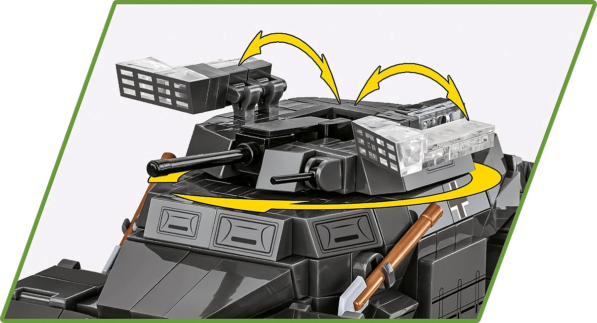 - Ruchome elementy: Otwierana wieża umożliwia umieszczenie figurki w pojeździe, co pozwala na jeszcze bardziej realistyczne wykorzystanie modelu.