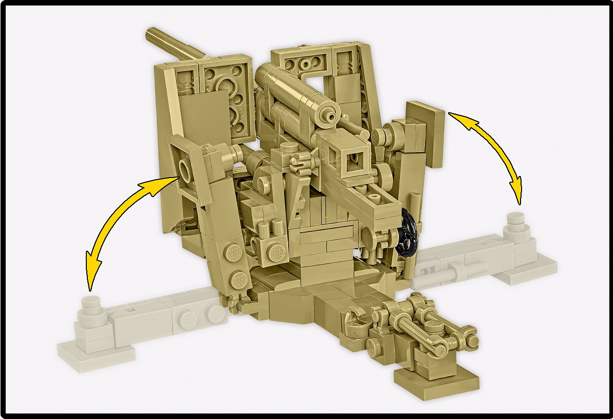 Ruchome elementy – Obrotowe łoże, regulowana lufa i dopracowane mechanizmy sprawiają, że armata wygląda i „zachowuje się” jak prawdziwa. Szczegółowy układ jezdny oraz realistyczne gąsienice ciągnika Sd.Kfz. 8. - każdy element został zaprojektowany z myślą o trwałości i zgodności historycznej.