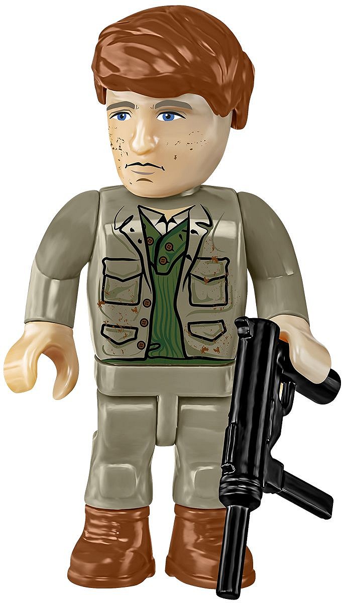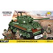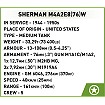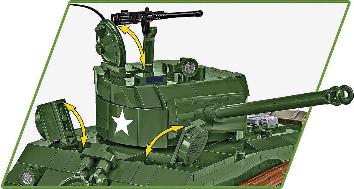 Świetnie odwzorowany z 865 klocków model posiada działającą trakcję gąsienicową. Możesz swobodnie nim jeździć po podłodze i obserwować pracę gąsienic! Poruszaj wieżą w zakresie 360 stopni i obierz cel ustawiając armatę na wybranej wysokości. Na wieży znajduje się karabin maszynowy Browning, który jest dokładną kopią wojennego oryginału. Czołg wygląda bardzo atrakcyjnie dzięki wielu akcesoriom przyczepionym do kadłuba. Widać, że spędził już na froncie dłuższy czas, a dołączona do niego 5-osobowa załoga to prawdziwi weterani, o których z pewnością można by nakręcić niejeden film! Szczegółowo odwzorowane figurki posiadają mnóstwo detali i z pewnością będą bardzo cennym elementem kolekcji! Zapewniamy, że każda z nich ma swój własny styl i charakter. Klockowa tabliczka z nadrukowaną nazwą czołgu pomoże Ci jeszcze lepiej wyeksponować model. Buduj historię, klocek po klocku!