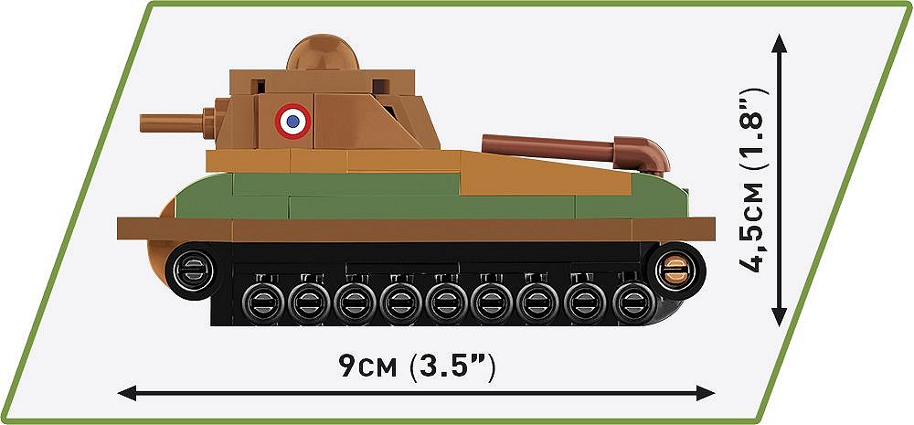 Mini model z klocków konstrukcyjnych COBI został zaprojektowany w skali 1:72 i składa się ze 99 wysokiej jakości elementów. Po zbudowaniu czołg ma 9 cm długości. Pomimo kompaktowego rozmiaru model zachował wszystkie najważniejsze cechy swojego historycznego pierwowzoru! Tego pojazdu nie można pomylić z żadnym innym! Na bokach wieży znajdują się nadruki z francuskimi oznaczeniami. Również kratki wentylacyjne to nadruk. Wieża czołgu jest ruchoma i można ją obracać.
