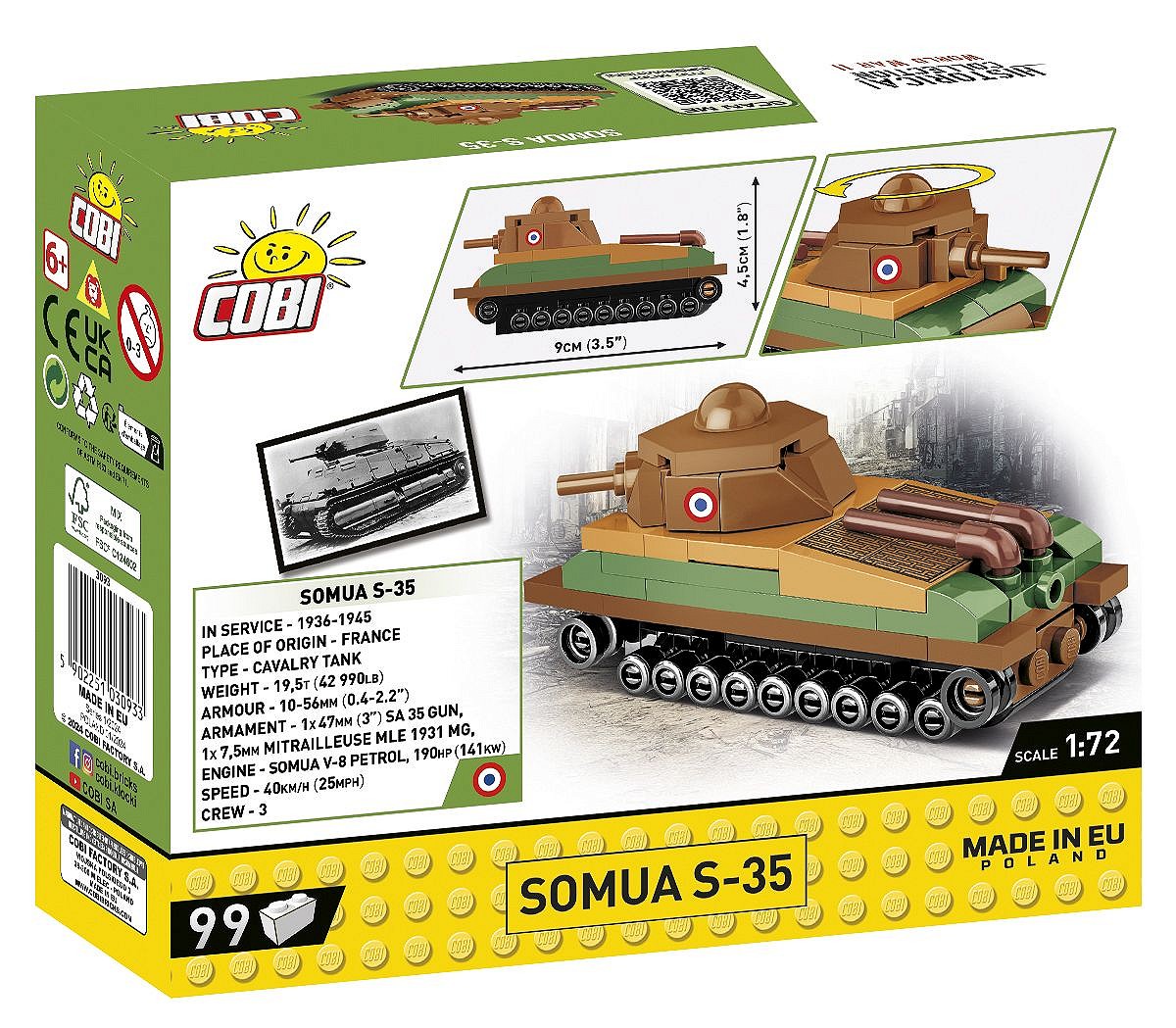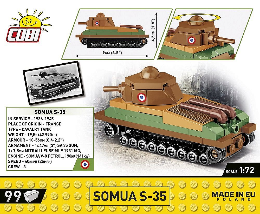 Model nadaje się w sam raz na dobry początek przygody z klockami konstrukcyjnymi COBI. Somua S-35 to również ciekawy model i gadżet dla kolekcjonerów. Zajmuje niewiele miejsca i z łatwością znajdzie swoje miejsce na biurku w domu, w pracy czy też na regale z książkami.