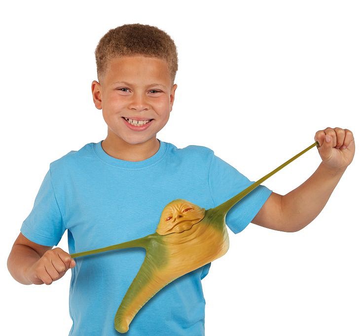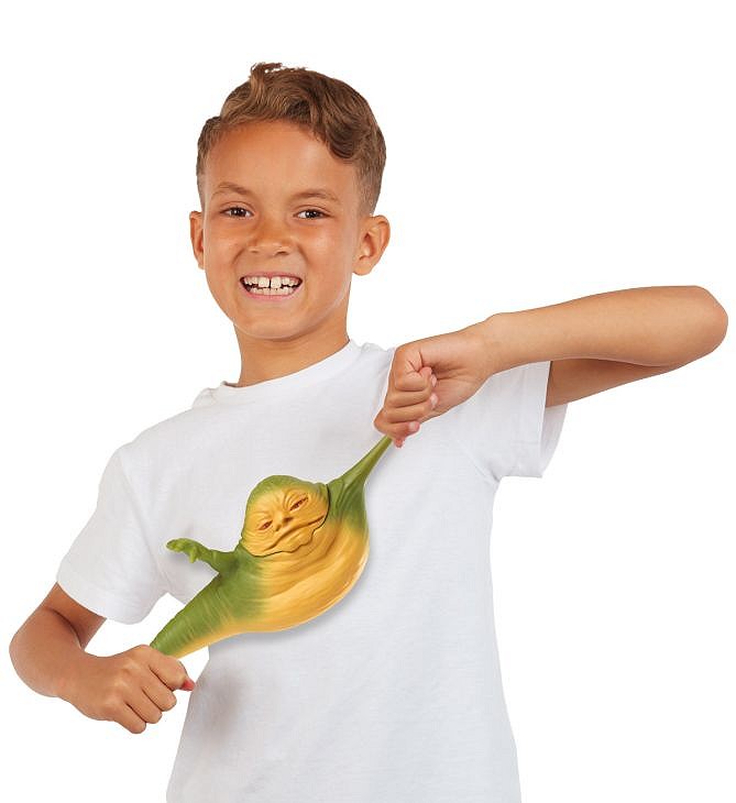 Tajne interesy, wpływy w galaktyce i... rozciągliwość! Oto Stretch Jabba the Hutt – najbardziej przerażający przestępca galaktyki, teraz w super elastycznej formie! Ten 30-centymetrowy boss galaktycznego półświatka rozciąga się aż do 104 cm, a potem powoli wraca do swojego pierwotnego, imponującego kształtu.Złap go za ręce i ogon, przeciągnij, wyginaj – ale uważaj! Jabba nigdy nie zapomina.