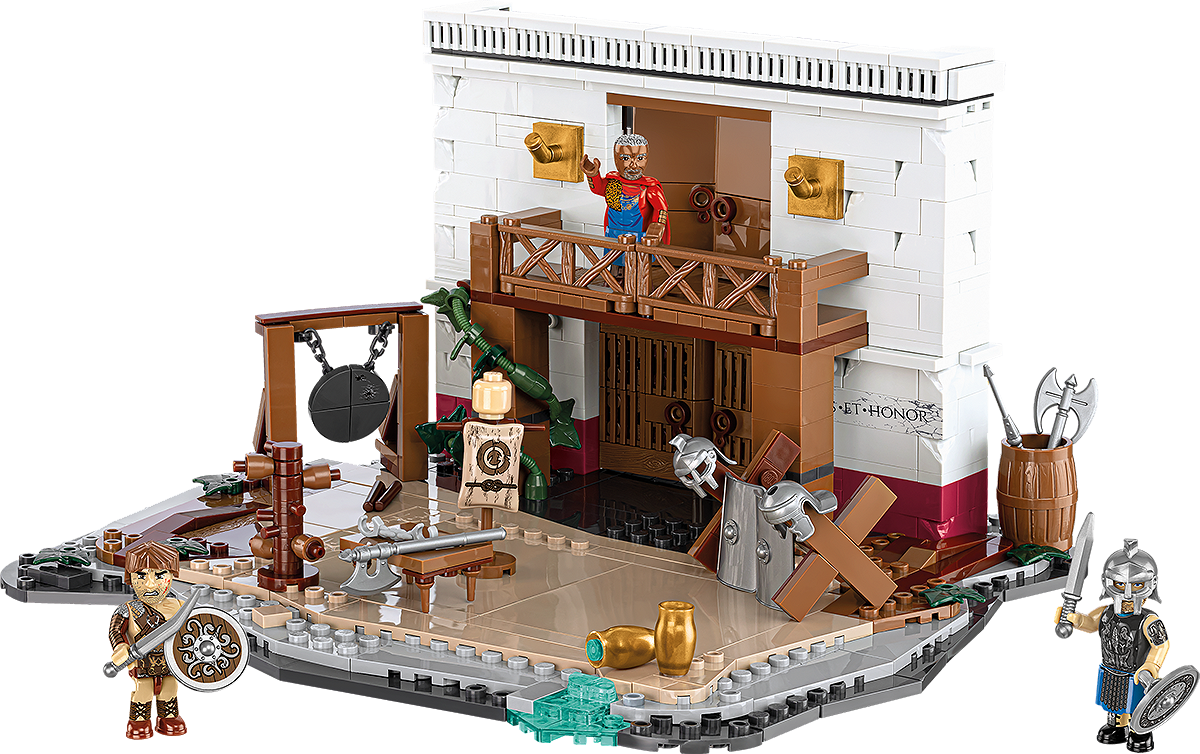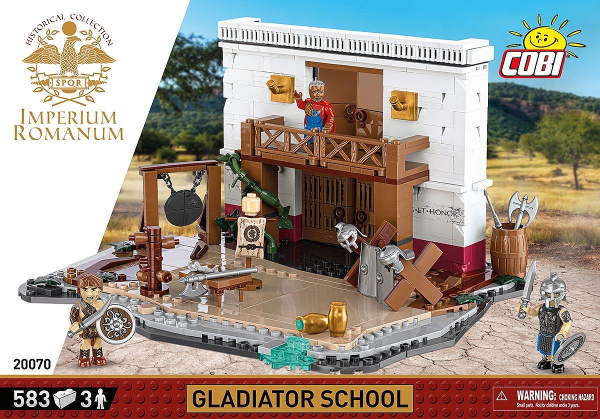 Przez stulecia ulubioną rozrywką Rzymian były walki gladiatorów, wokół których wyrósł prawdziwy biznes! Lanista, jak określano właściciela szkoły gladiatorów, przygotowywał niewolników do walki! Zbuduj dioramę przedstawiającą budynek szkoły i plac treningowy! Umieść tam figurki najsłynniejszych gladiatorów w dziejach Rzymu! Zachwyć się mnóstwem detali i akcesoriów!