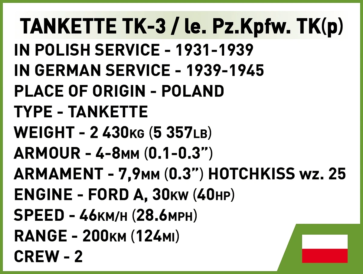 Lekki czołg TK-3, oparty na brytyjskiej konstrukcji Carden-Loyd, był jednym z pierwszych polskich pojazdów pancernych. Tankietki te odegrały niemałą rolę w kampanii wrześniowej 1939 roku, stanowiąc wsparcie dla piechoty i w zadaniach rozpoznawczych.
